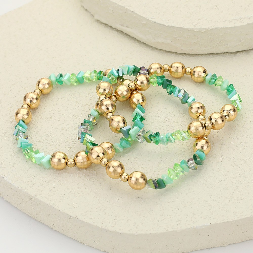 3PCS - Metal Ball Faceted Beaded Stretch Multi Layered Bracelets