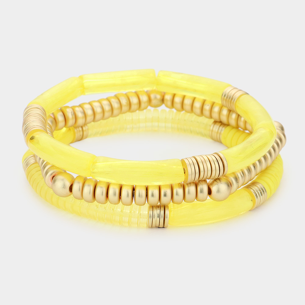 3PCS - Metal Ball Resin Beaded Stretch Bracelets