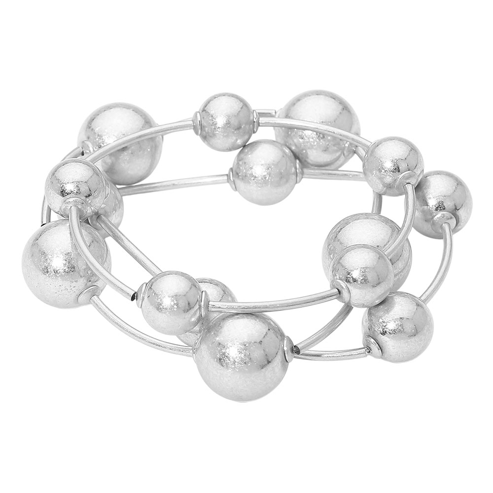 • Enhance your style with this modern beaded bangle set featuring sleek, polished spheres on layered metal bands. Perfect for stacking or wearing solo, this elegant design adds a refined statement to both casual and formal ensembles with timeless sophistication.