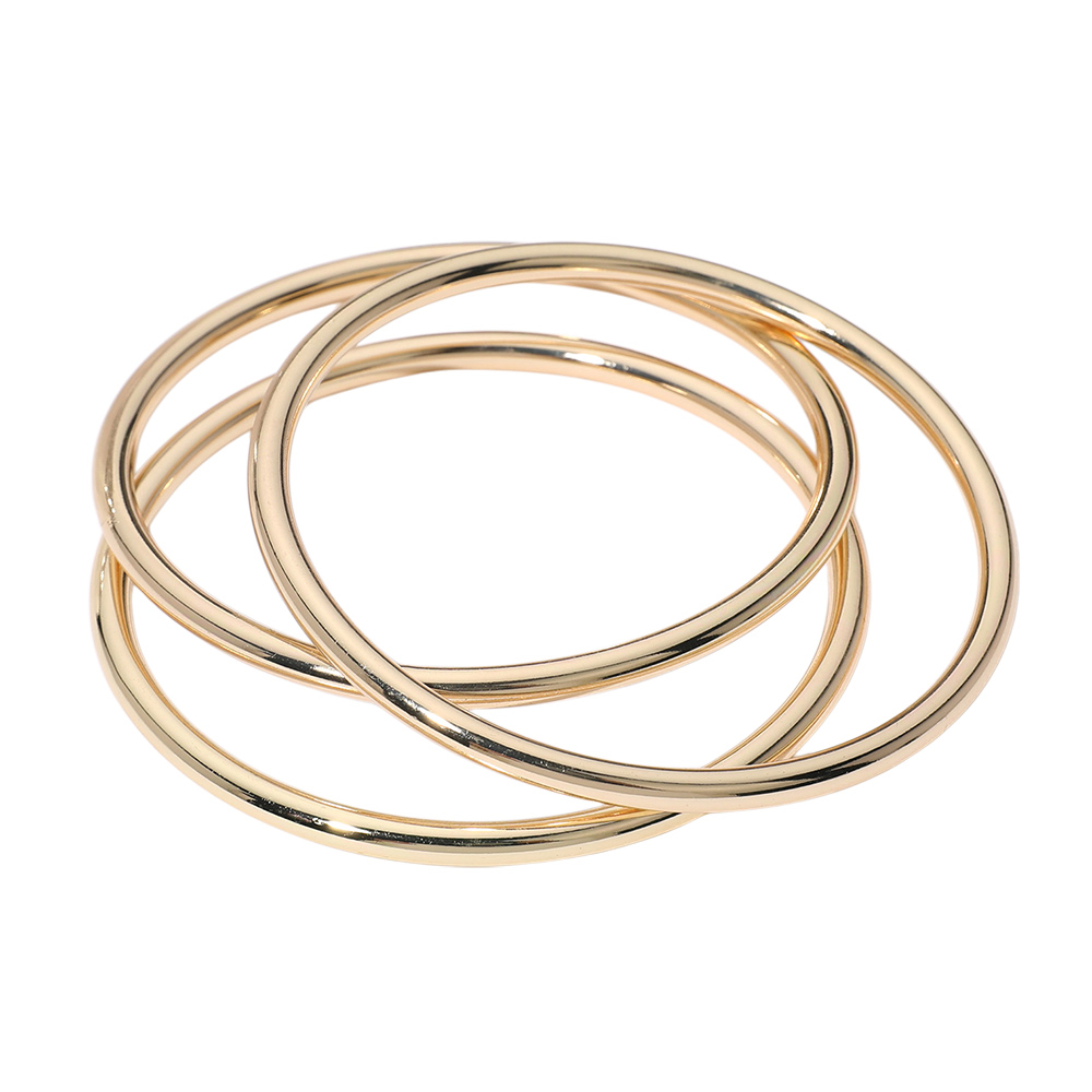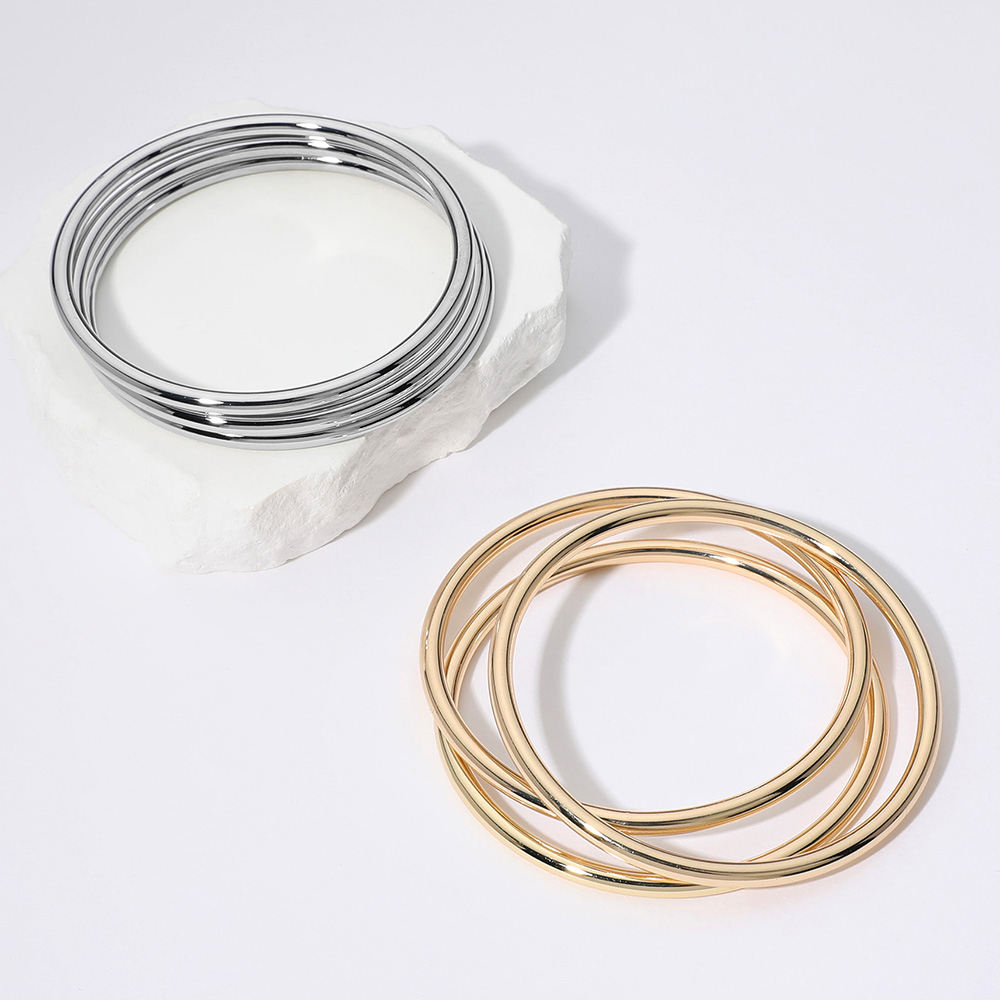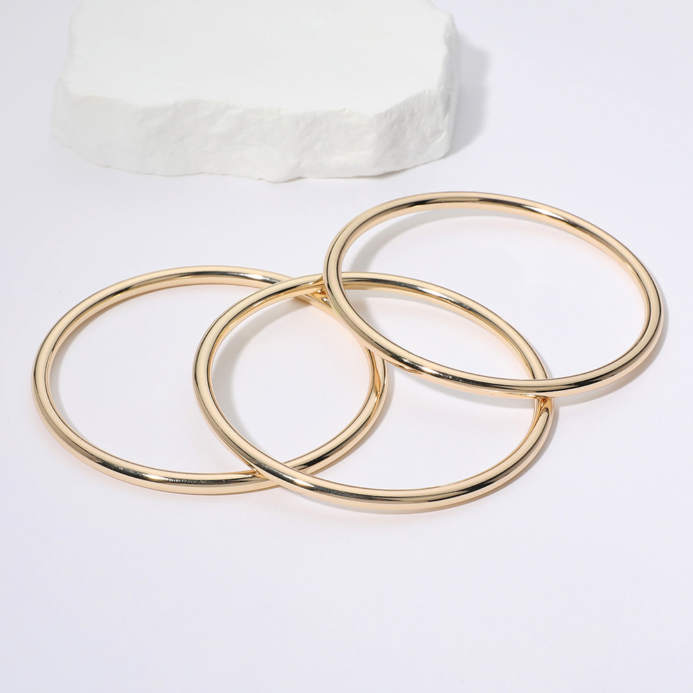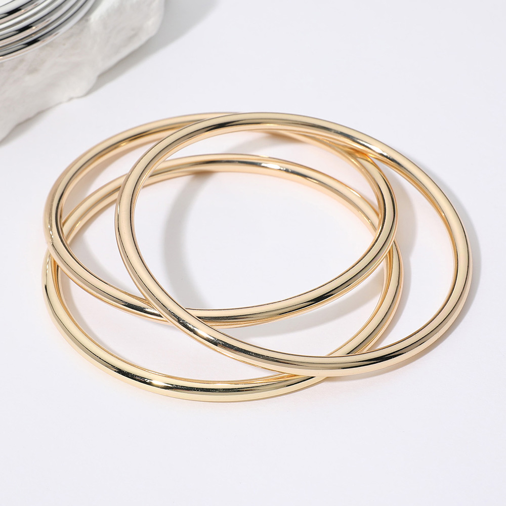 Details • Size : 0.5" H, 2.5" D • Enhance your look with this set of three elegant bangles, designed with a smooth, polished finish. Perfect for daily wear or special events, these lightweight bangles add timeless charm and understated sophistication to any ensemble. • Lead and Nickel Compliant