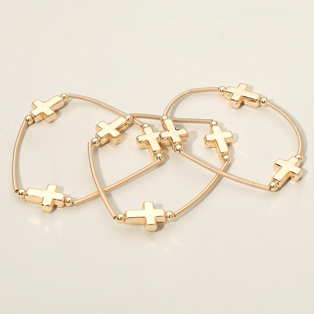 3PCS - Metal Cross Station Stretch Multi Layered Bracelets