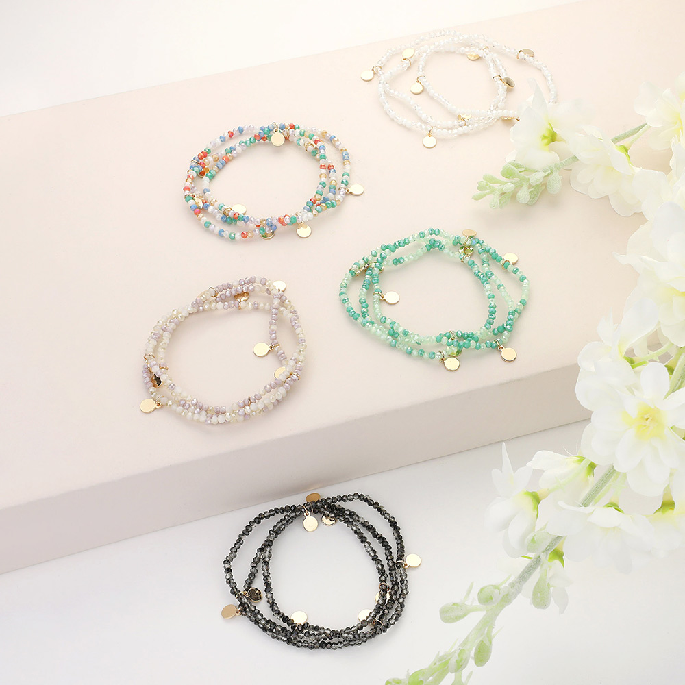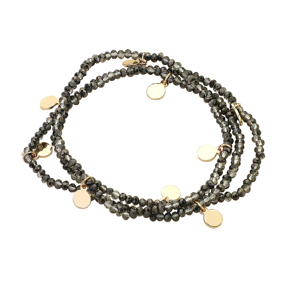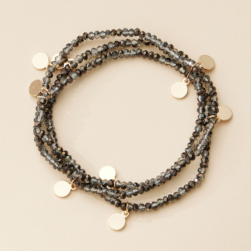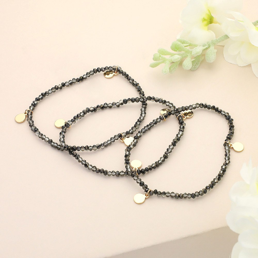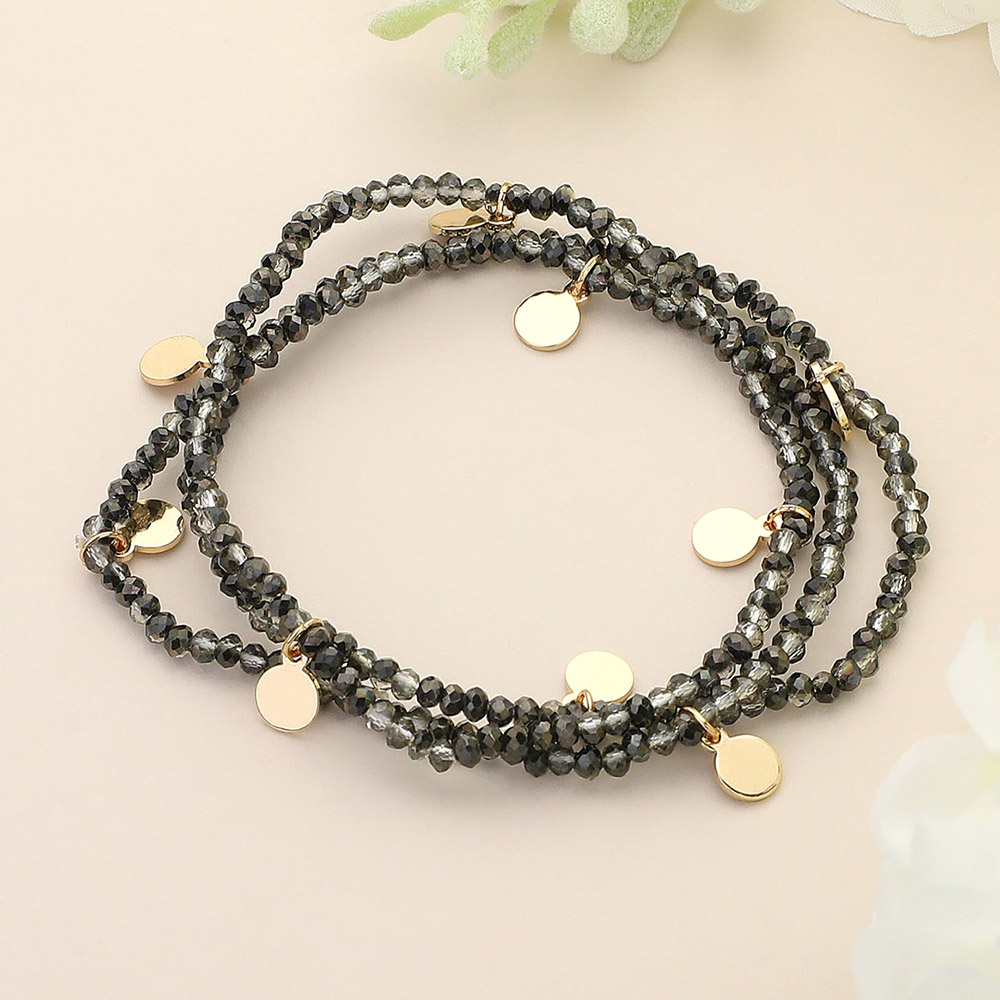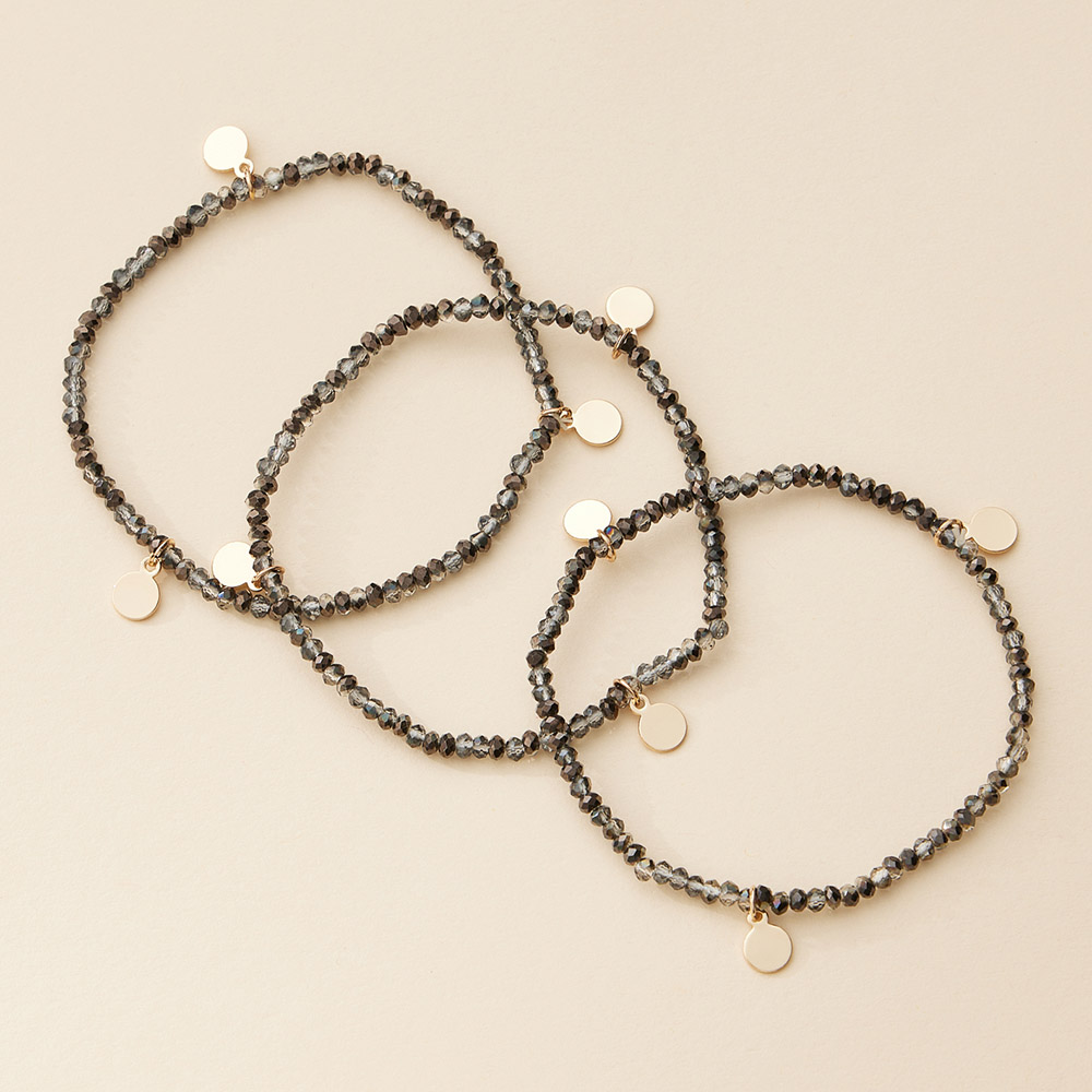 3PCS - Metal Disc Charm Faceted Beaded Stretch Multi Layered Bracelets