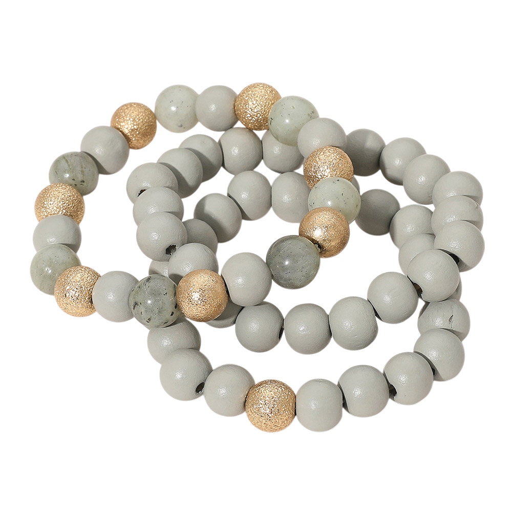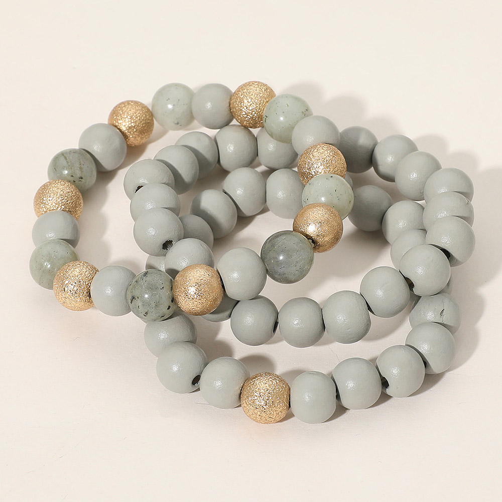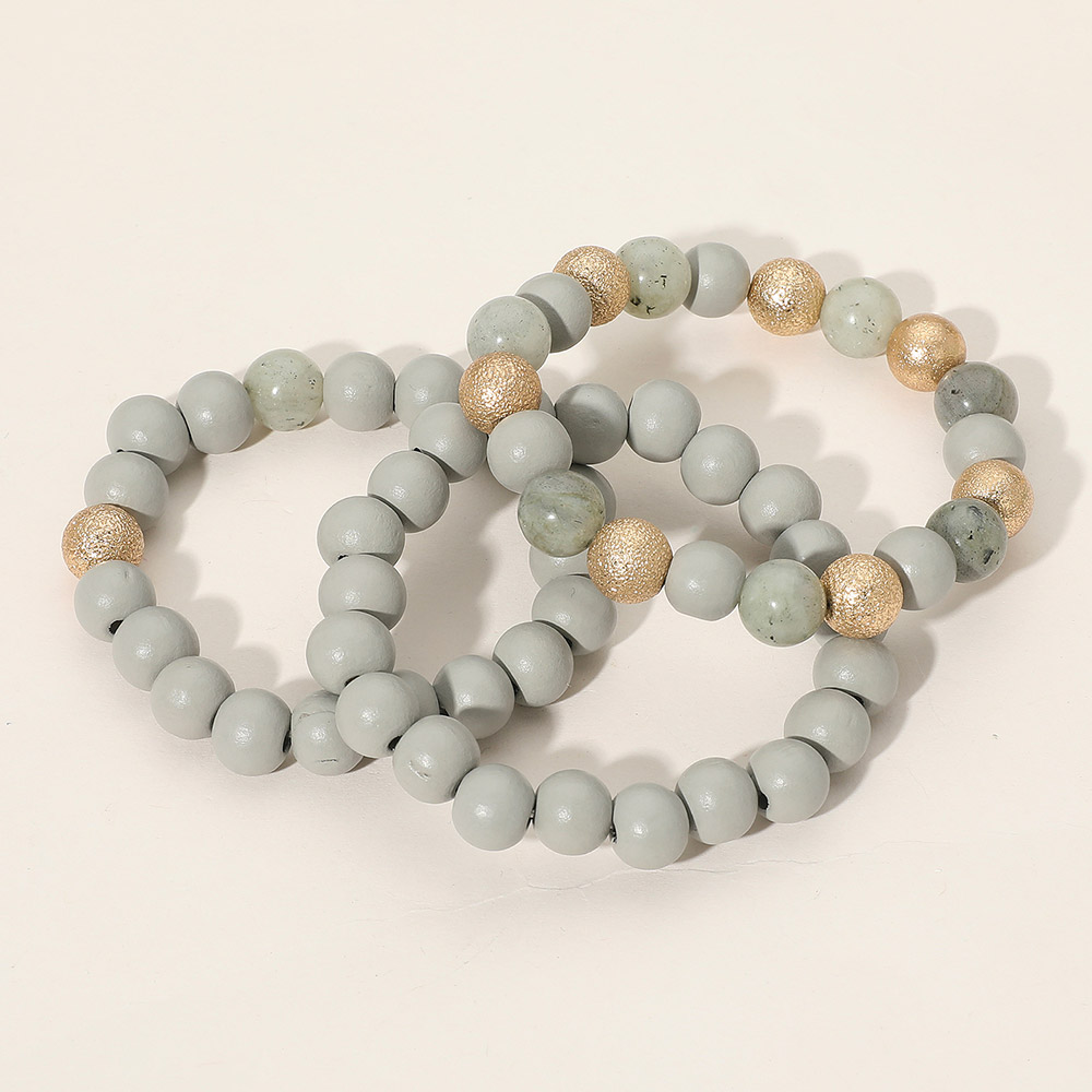 3PCS - Metal Natural Stone Wood Beaded Stretch Multi Layered Bracelets
