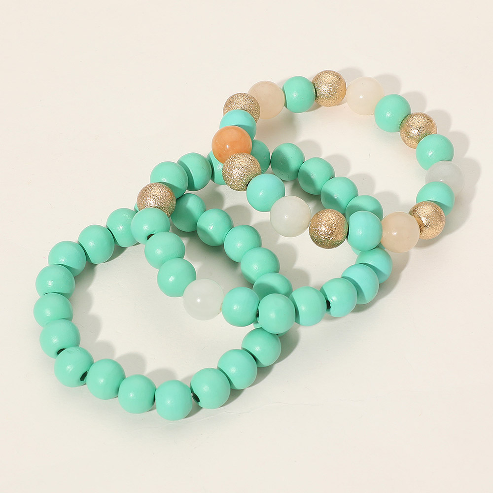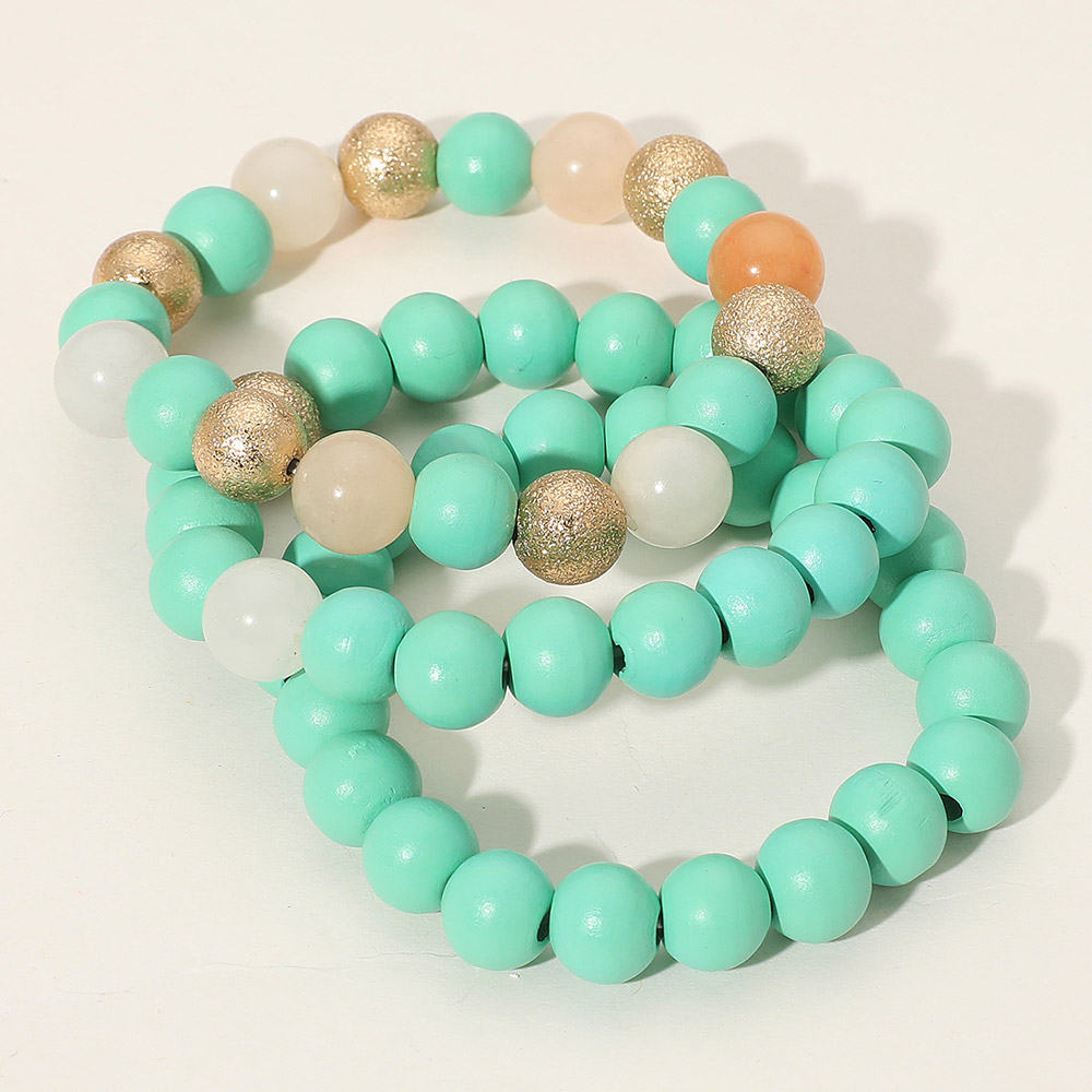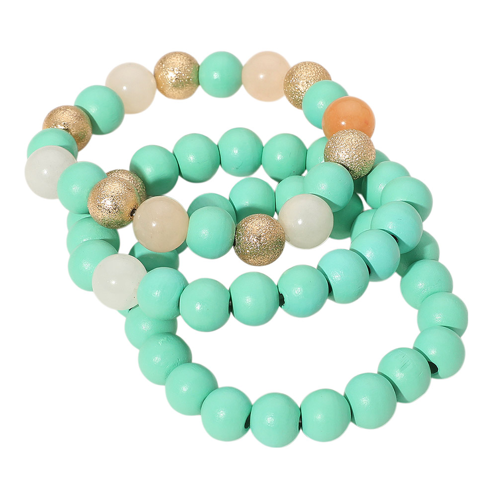 3PCS - Metal Natural Stone Wood Beaded Stretch Multi Layered Bracelets