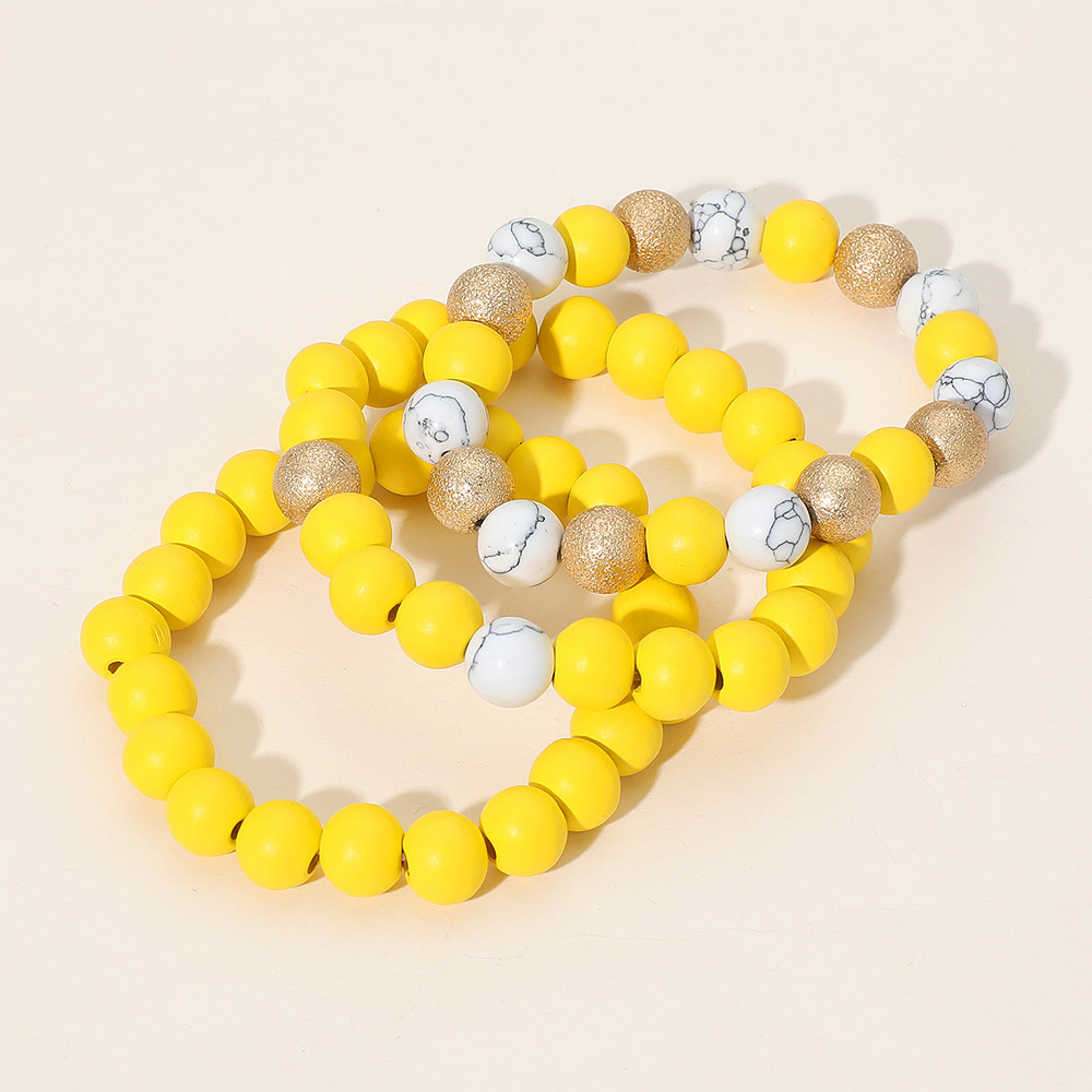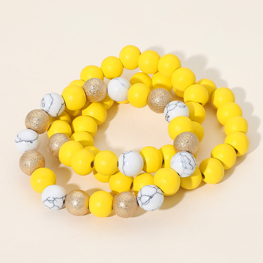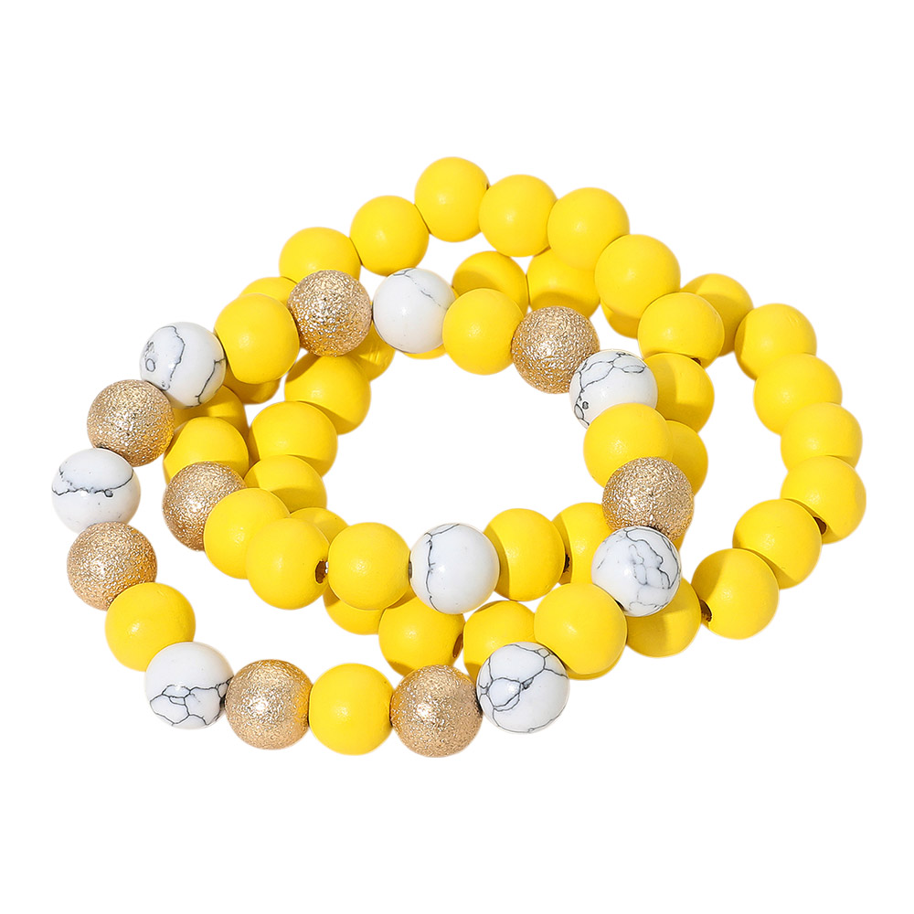 • Set of three stretch bracelets featuring smooth round beads, accented with marbled and shimmering textured beads. A stylish accessory that blends bold flair with a touch of elegance—perfect for stacking or wearing solo for a modern statement look.