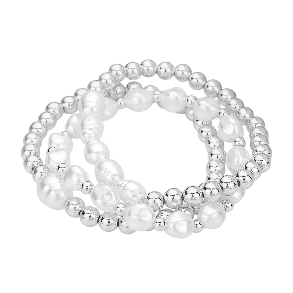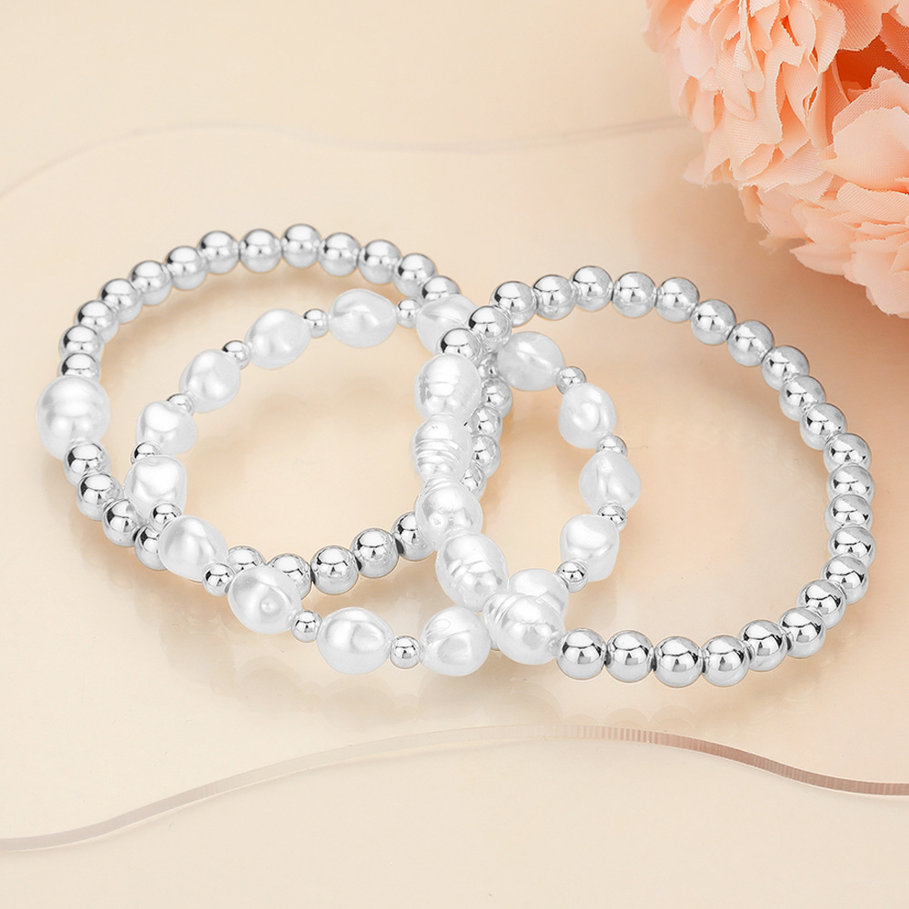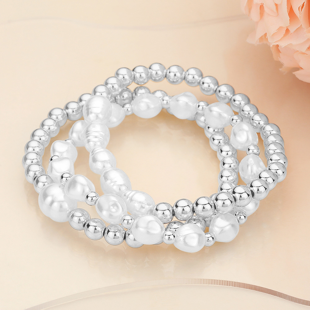 3PCS - Metal Pearl Ball Beaded Stretch Multi Layered Bracelets