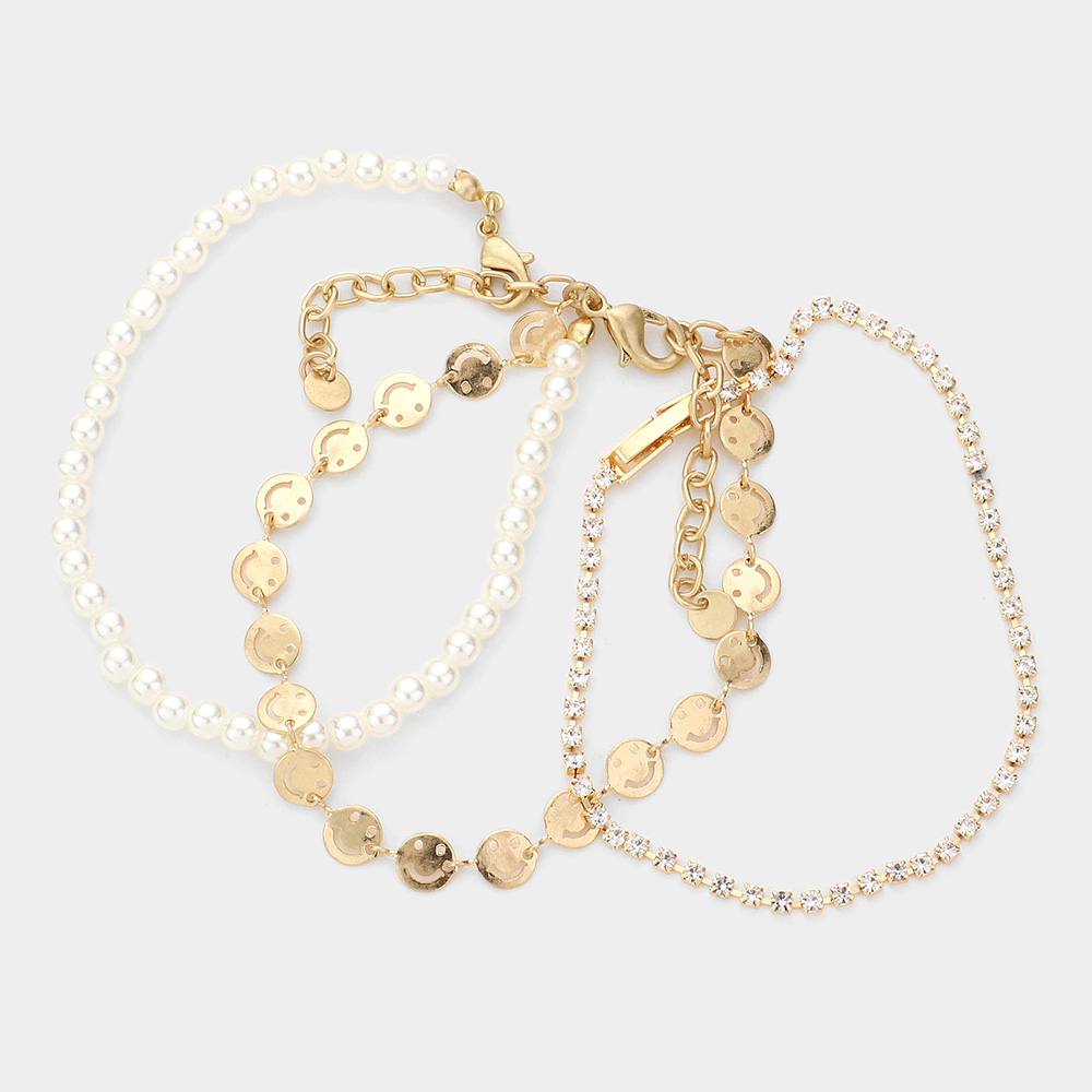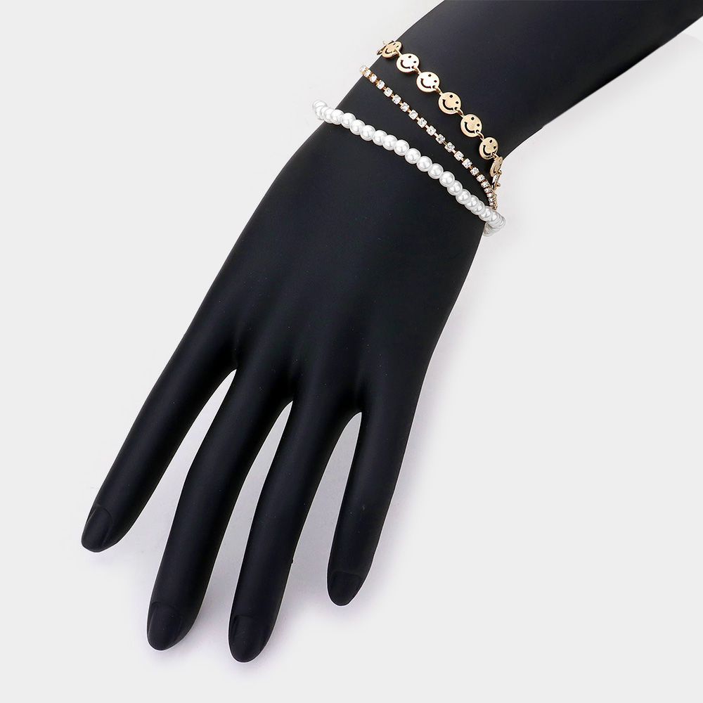 3PCS - Metal Smile Link Pearl Tennis Bracelets