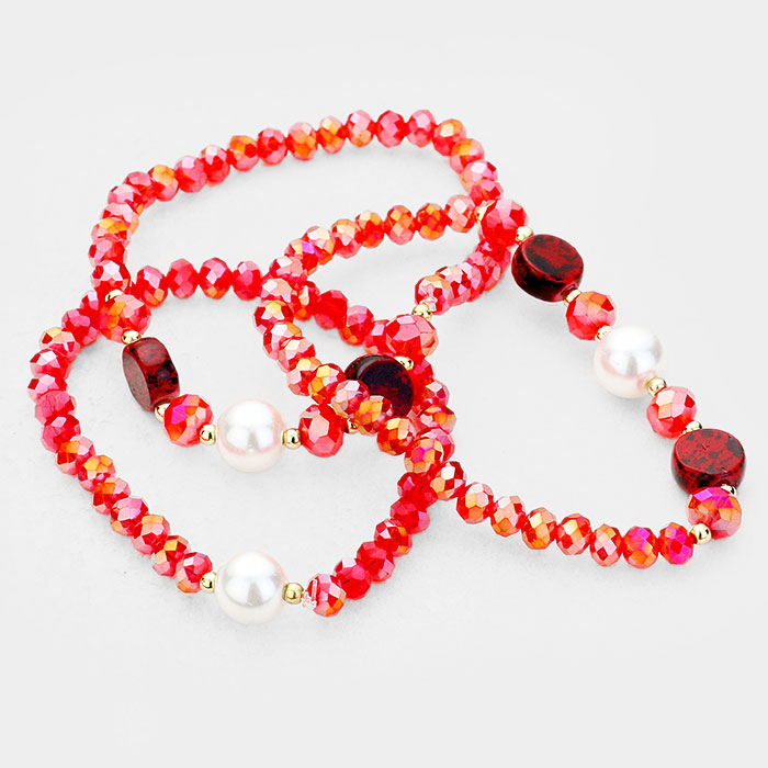 3PCS Multi Strand Pearl Natural Stone Bead Stretch Bracelets