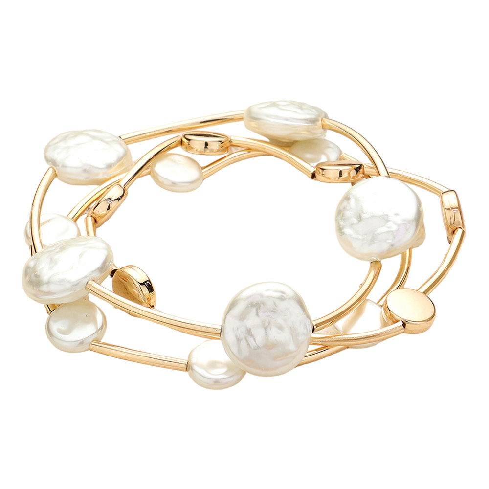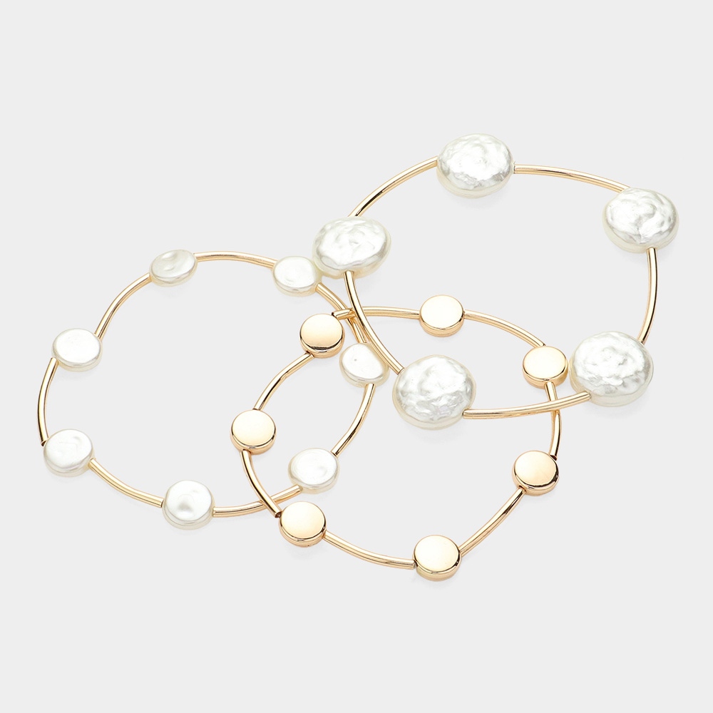 3PCS - Natural Pearl Disc Pointed Stretch Multi Layered Bracelets