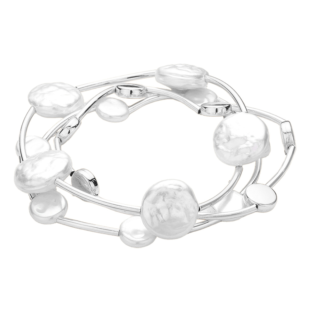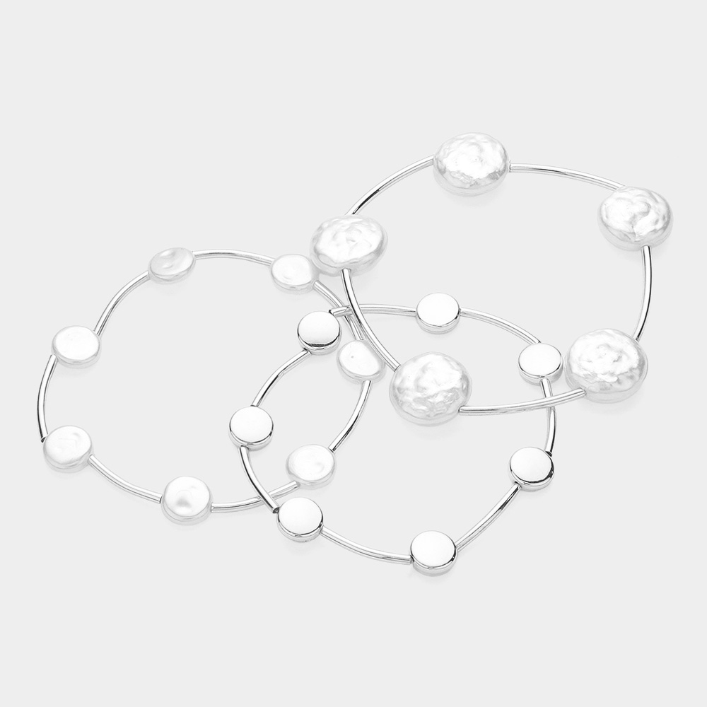 3PCS - Natural Pearl Disc Pointed Stretch Multi Layered Bracelets