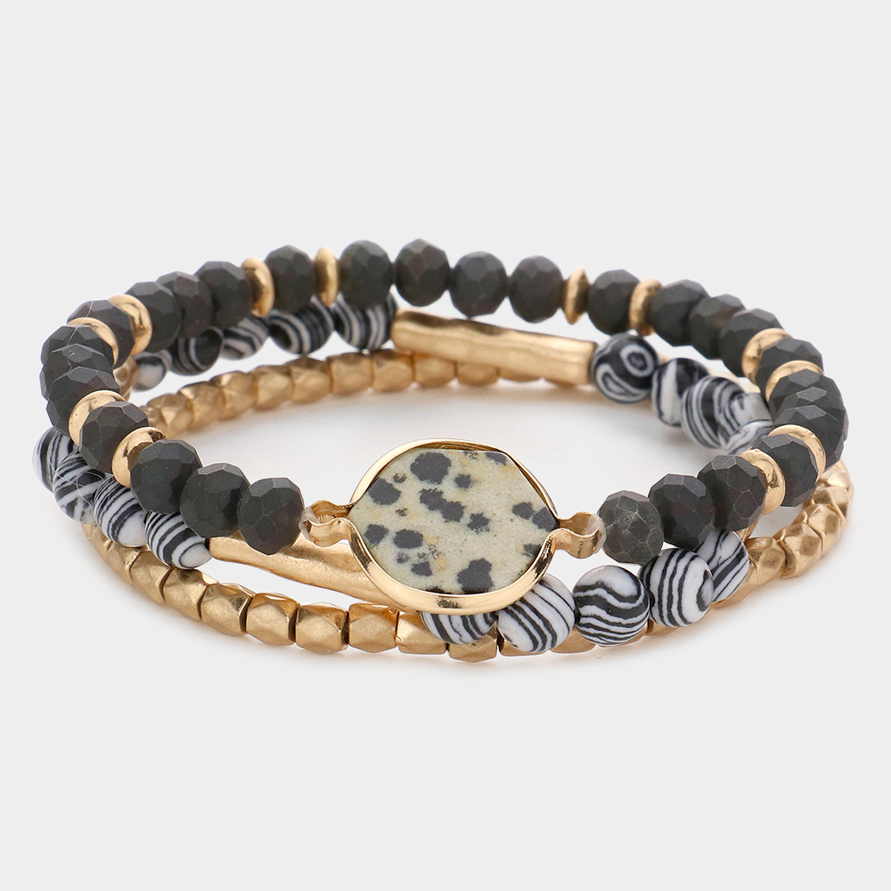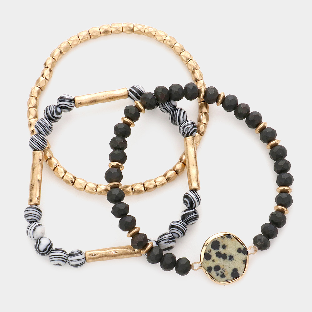 3PCS - Natural Stone Accented Beaded Stretch Bracelets