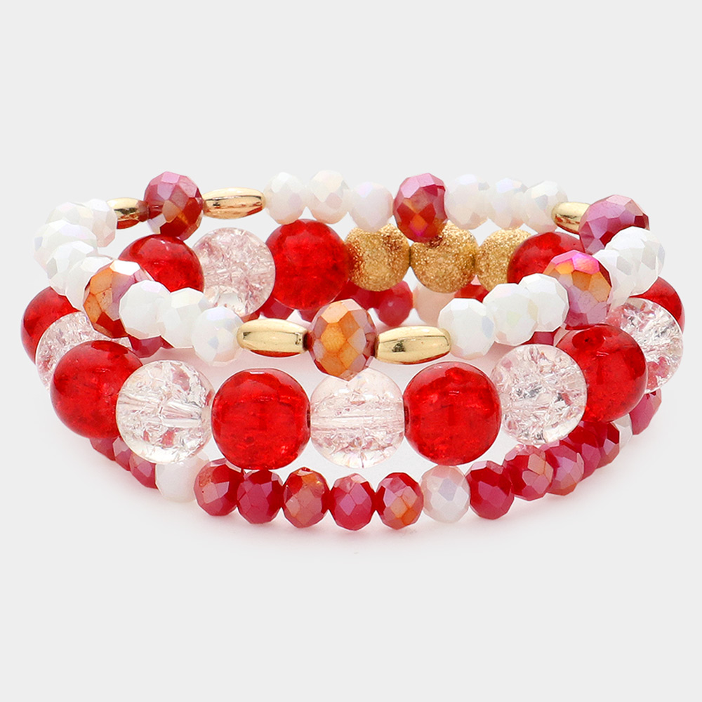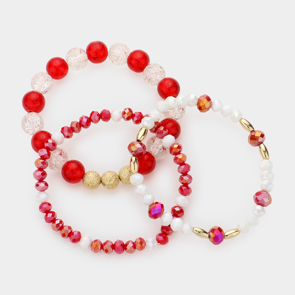 3PCS - Natural Stone Faceted Beaded Stretch Bracelets