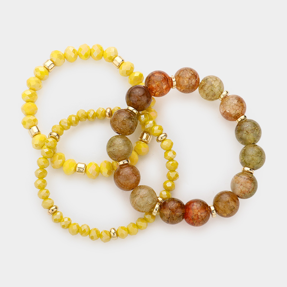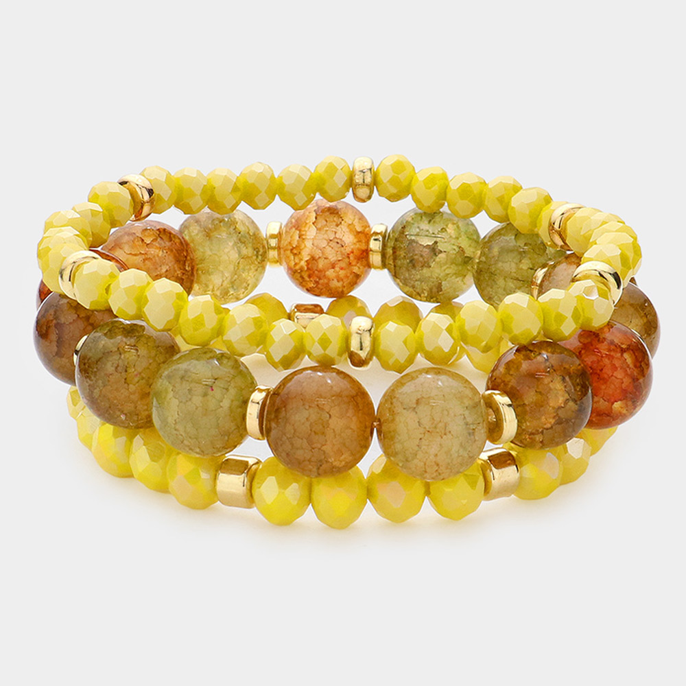 3PCS - Natural Stone Faceted Beaded Stretch Bracelets