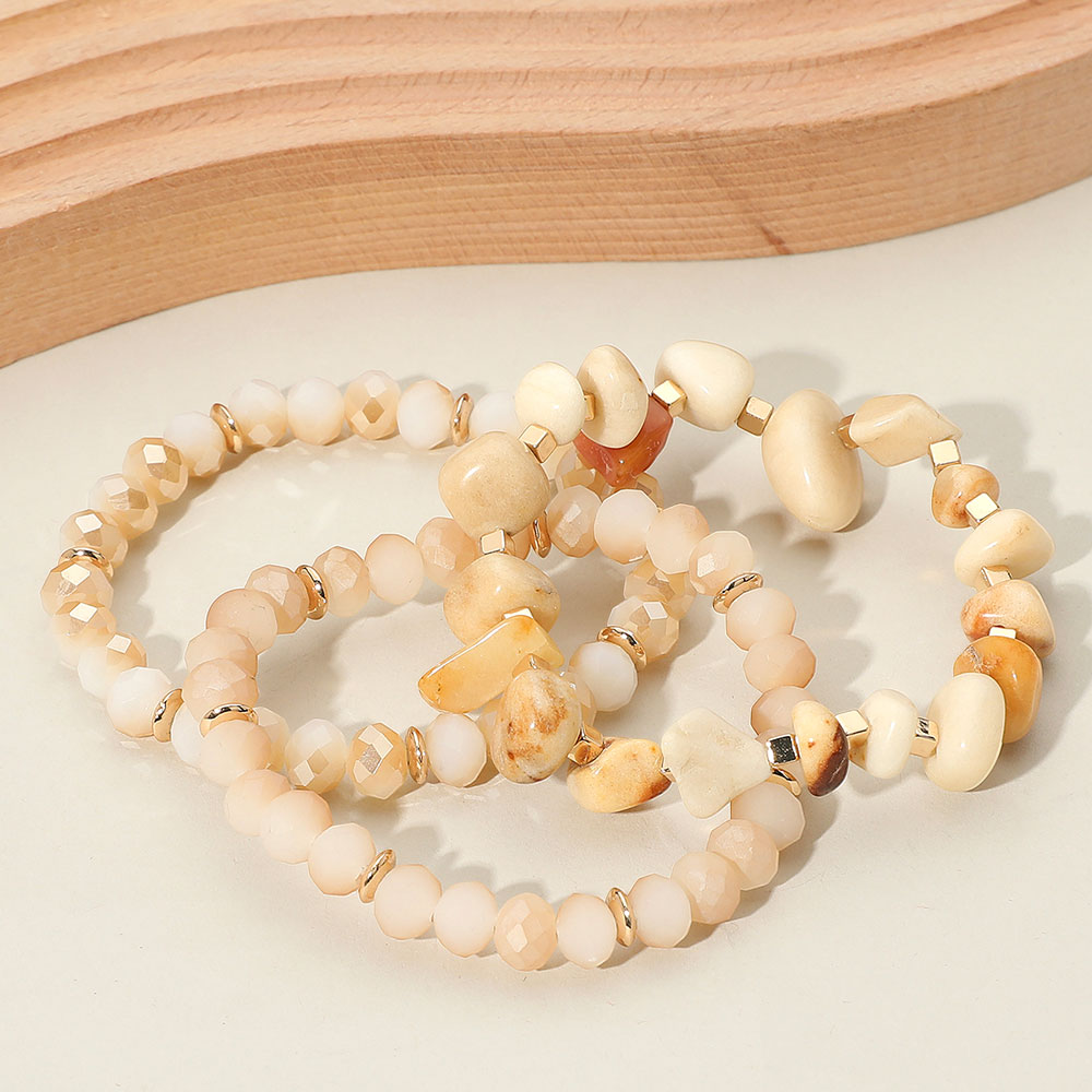 3PCS - Natural Stone Faceted Beaded Stretch Multi Layered Bracelets