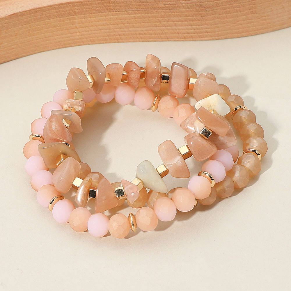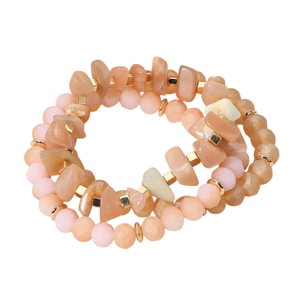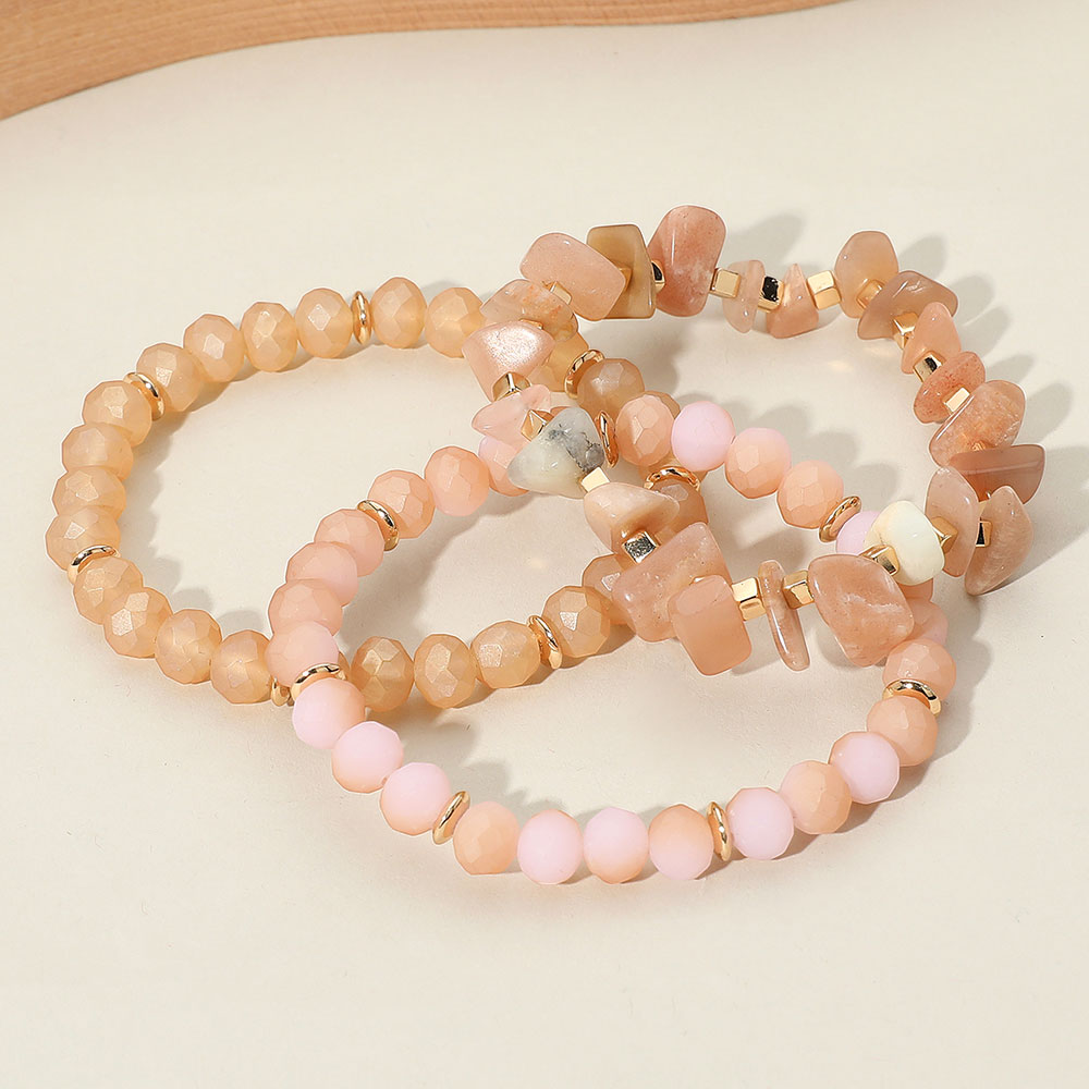 3PCS - Natural Stone Faceted Beaded Stretch Multi Layered Bracelets
