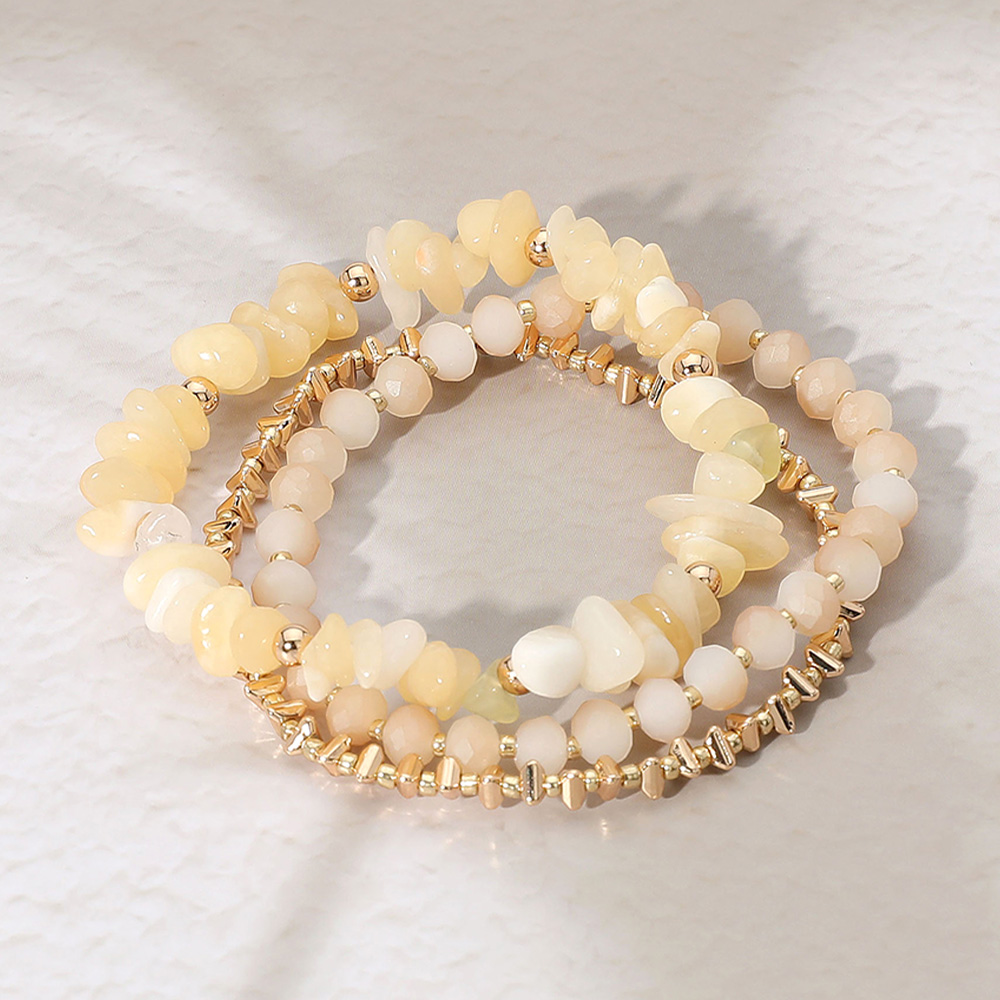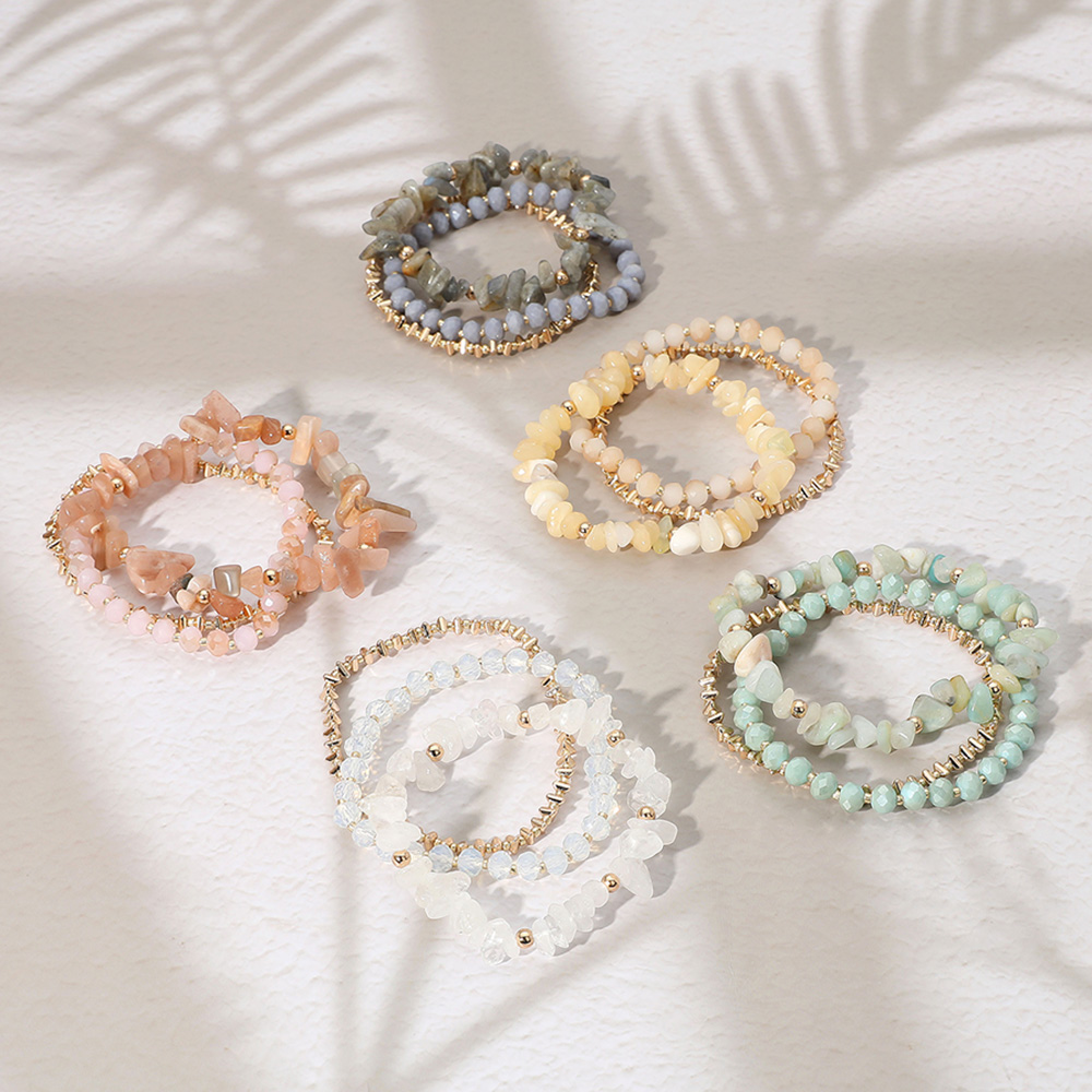 3PCS - Natural Stone Faceted Beaded Stretch Multi Layered Bracelets