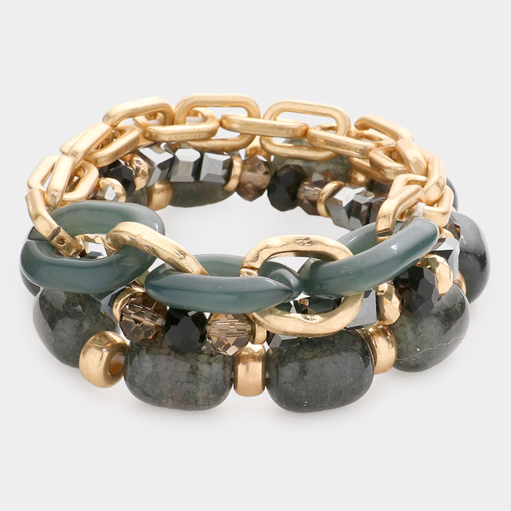 3PCS - Natural Stone Faceted Beaded Stretch Multi Layered Bracelets