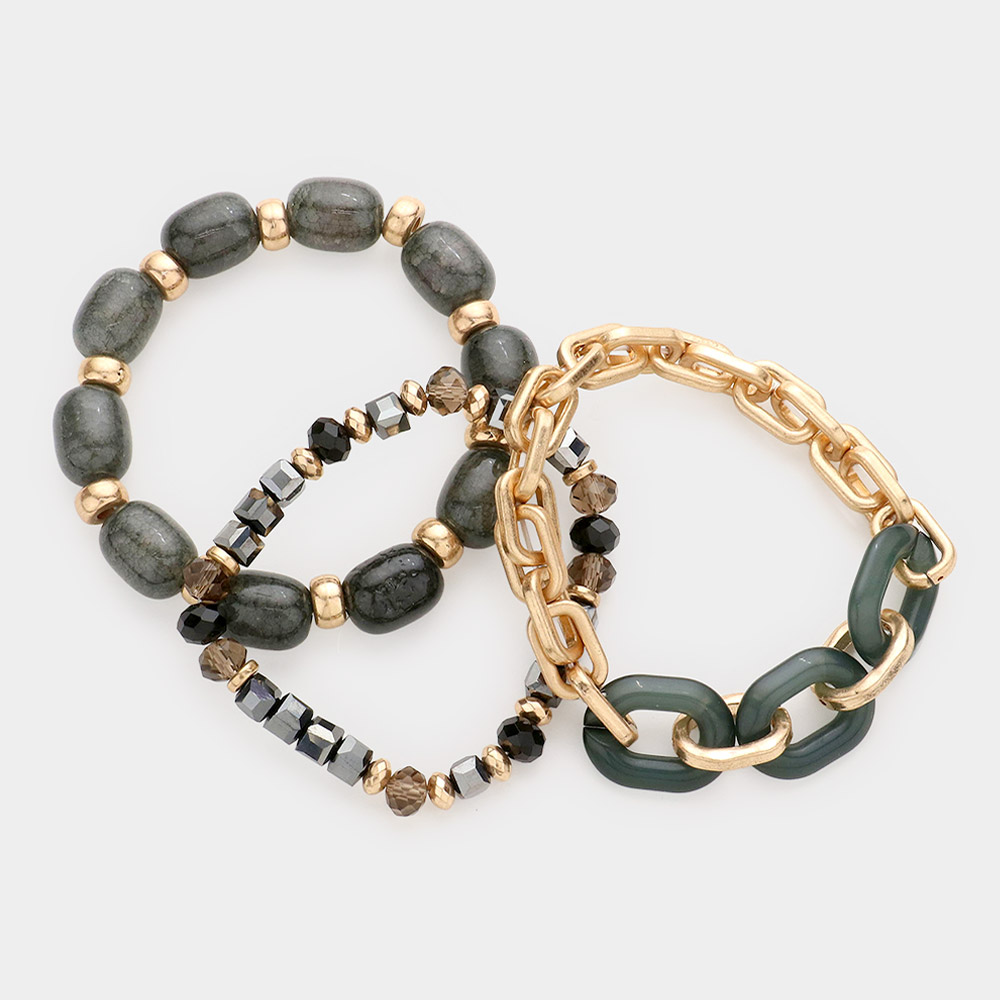 3PCS - Natural Stone Open Metal Oval Link Stretch Bracelets