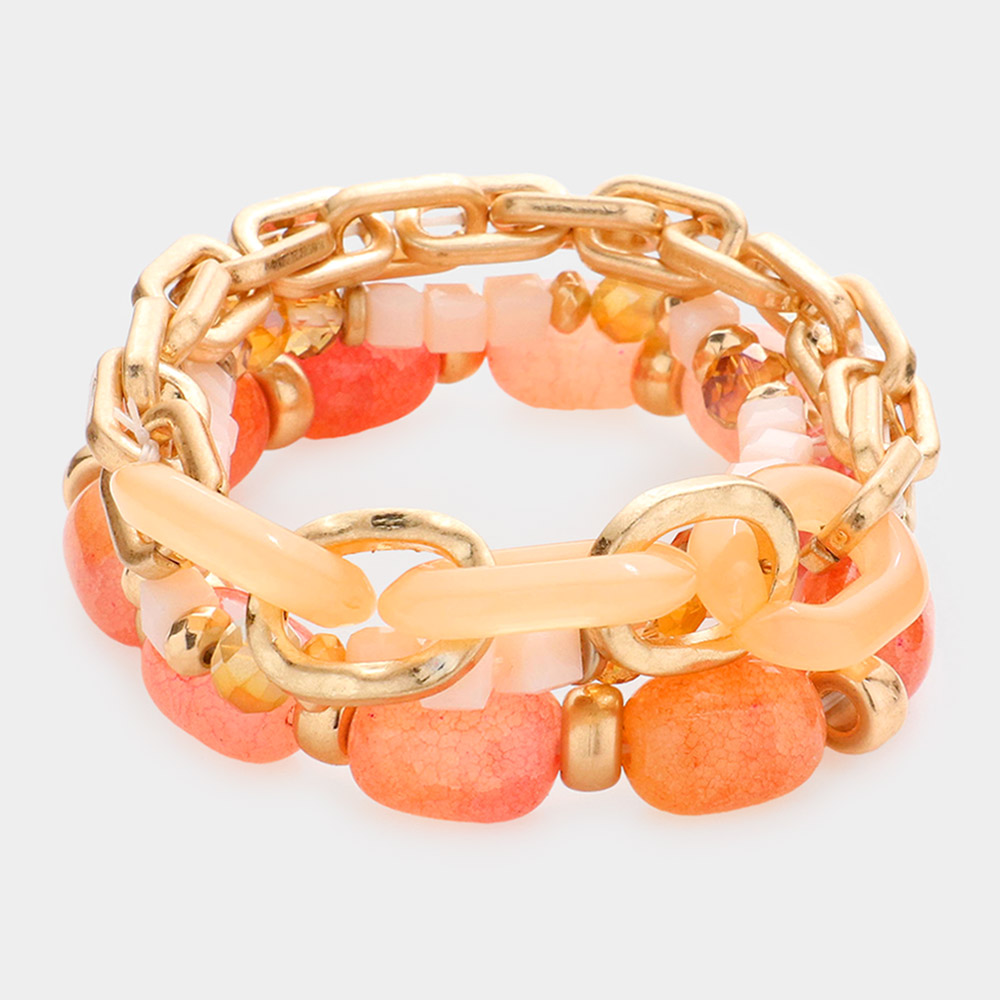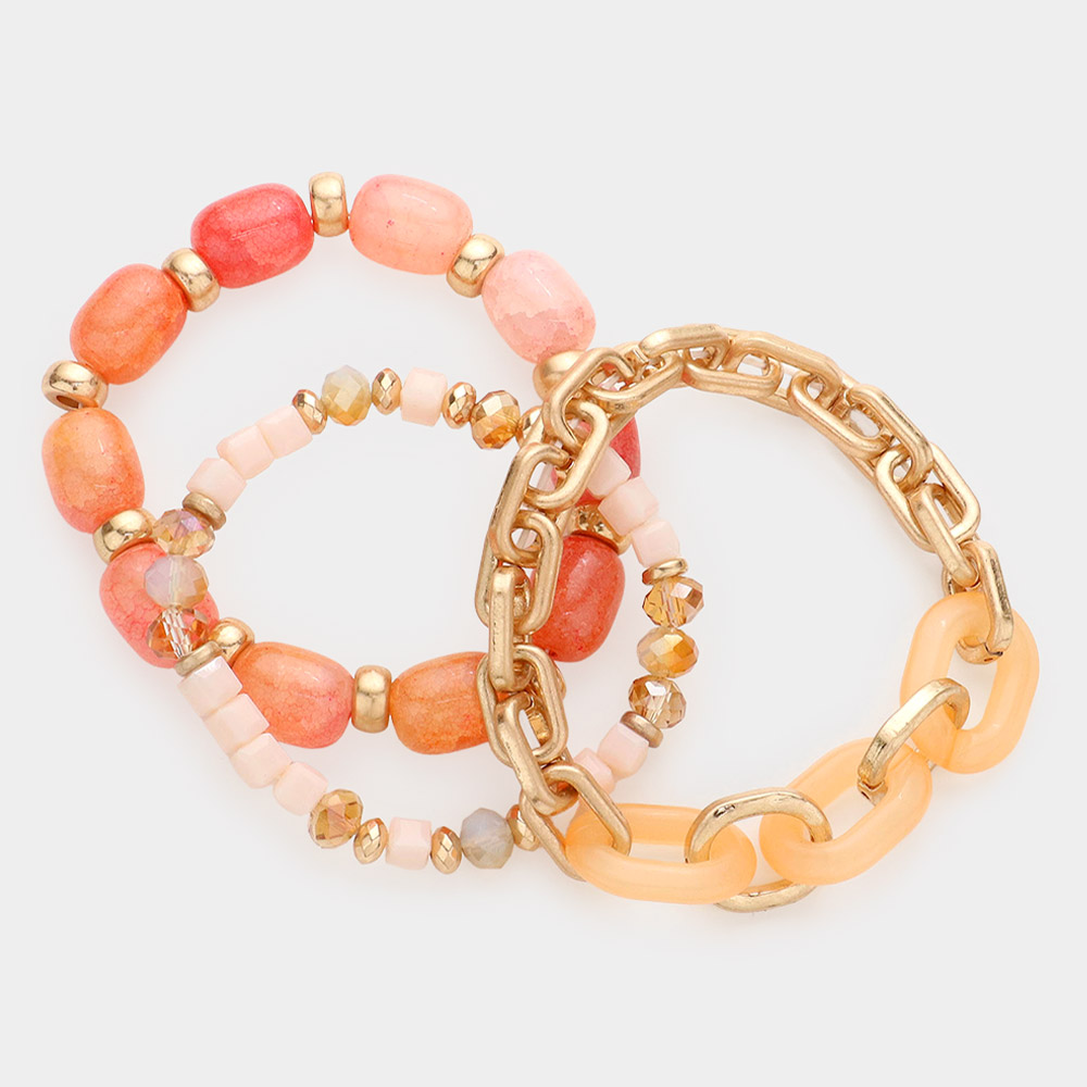 3PCS - Natural Stone Open Metal Oval Link Stretch Bracelets