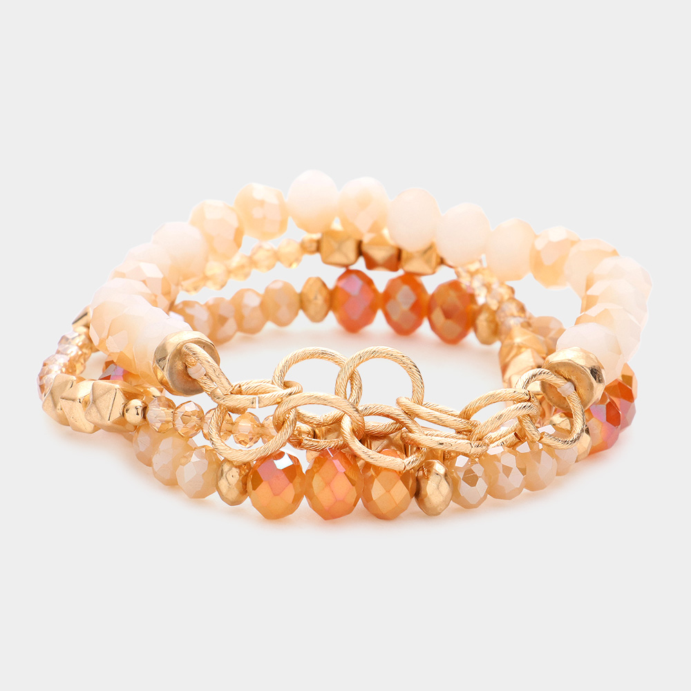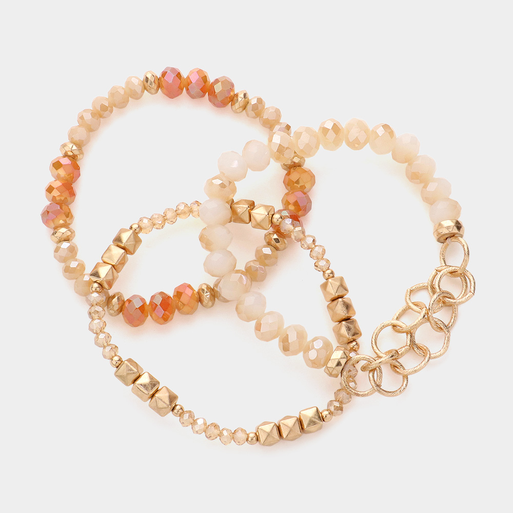 3PCS - Open Circle Link Metal Cube Faceted Beaded Stretch Bracelets