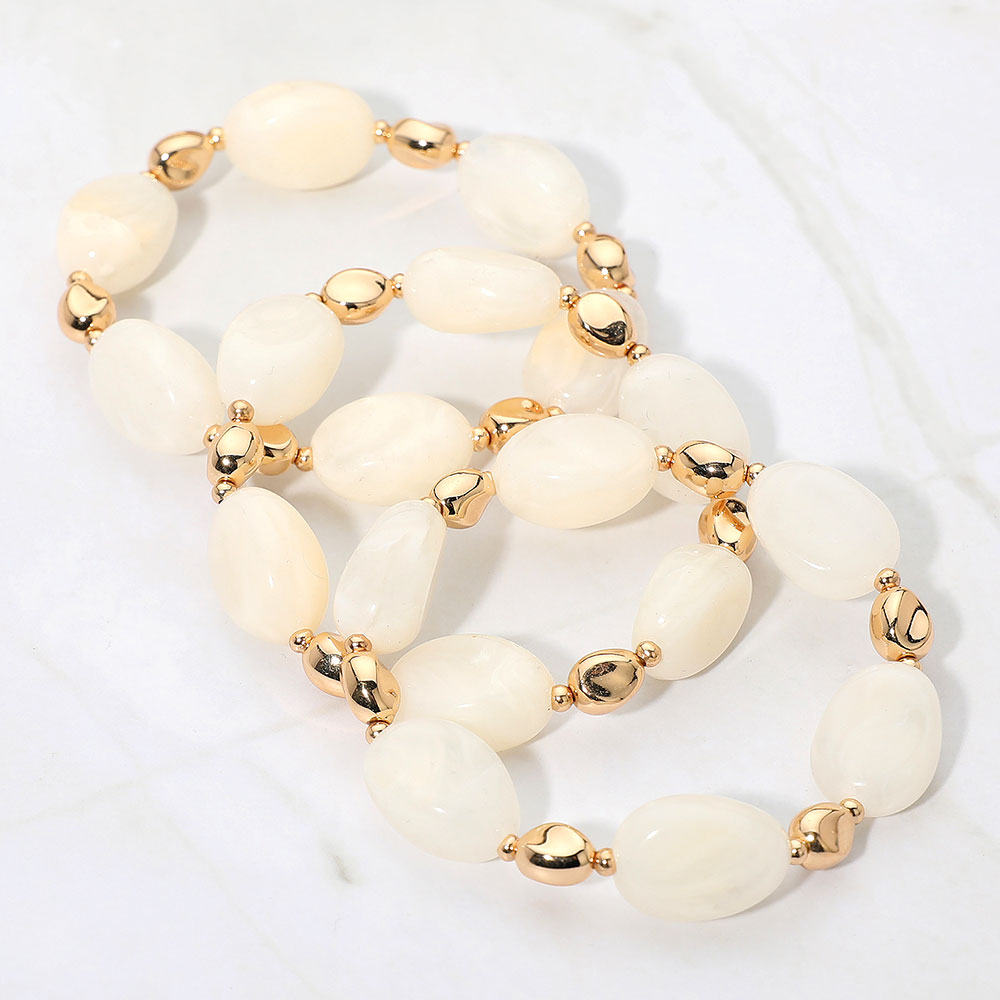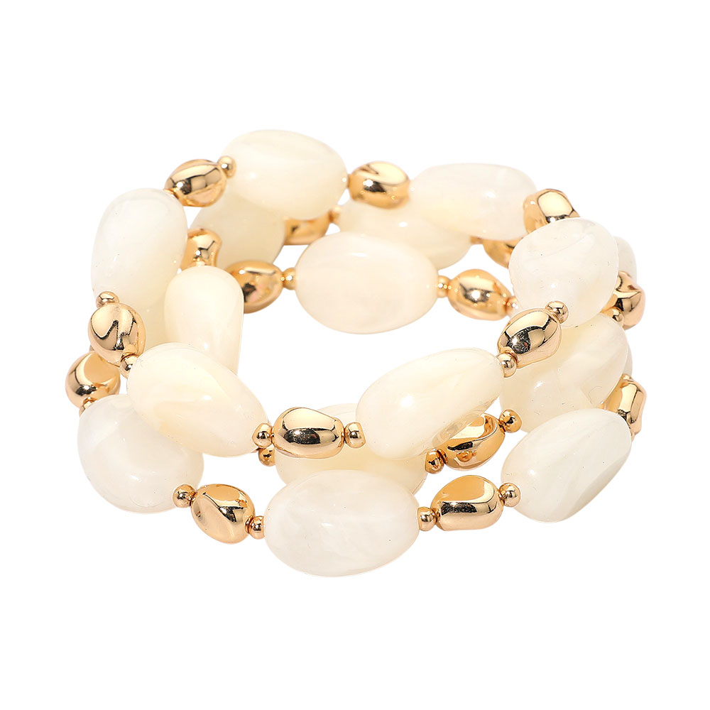 3PCS - Oval Pebble Beaded Stretch Multi Layered Bracelet