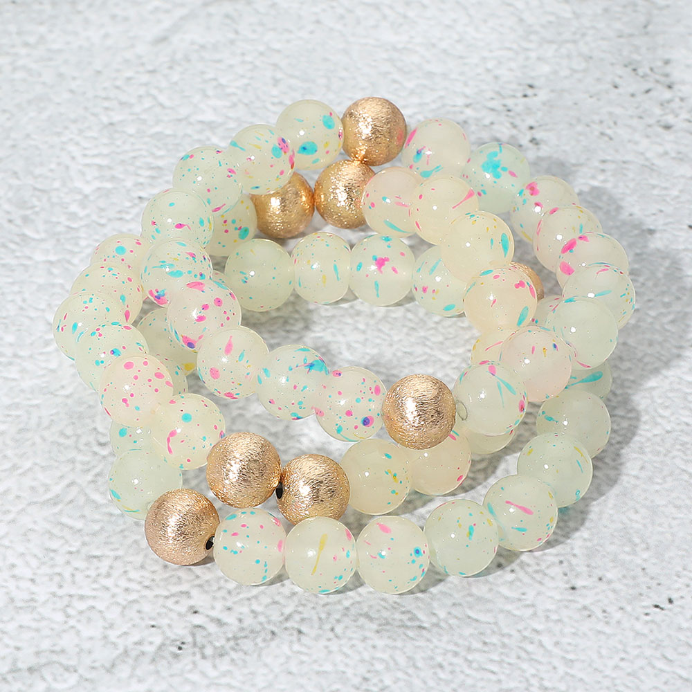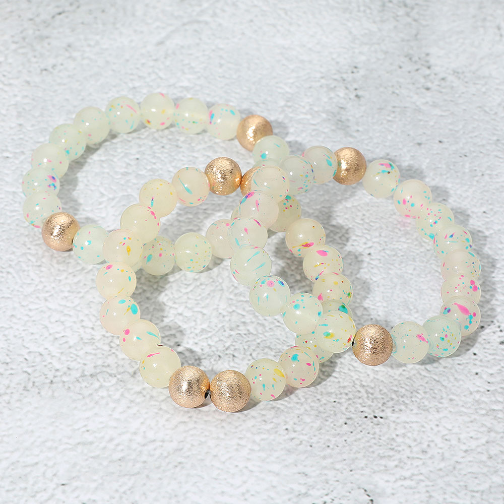 Details • Size : 1.25" H • Stretchable • Elevate your look with this 3-strand beaded stretch bracelet featuring smooth round beads and textured metallic accents. A lightweight and versatile accessory perfect for layering or wearing solo. • Lead and Nickel Compliant
