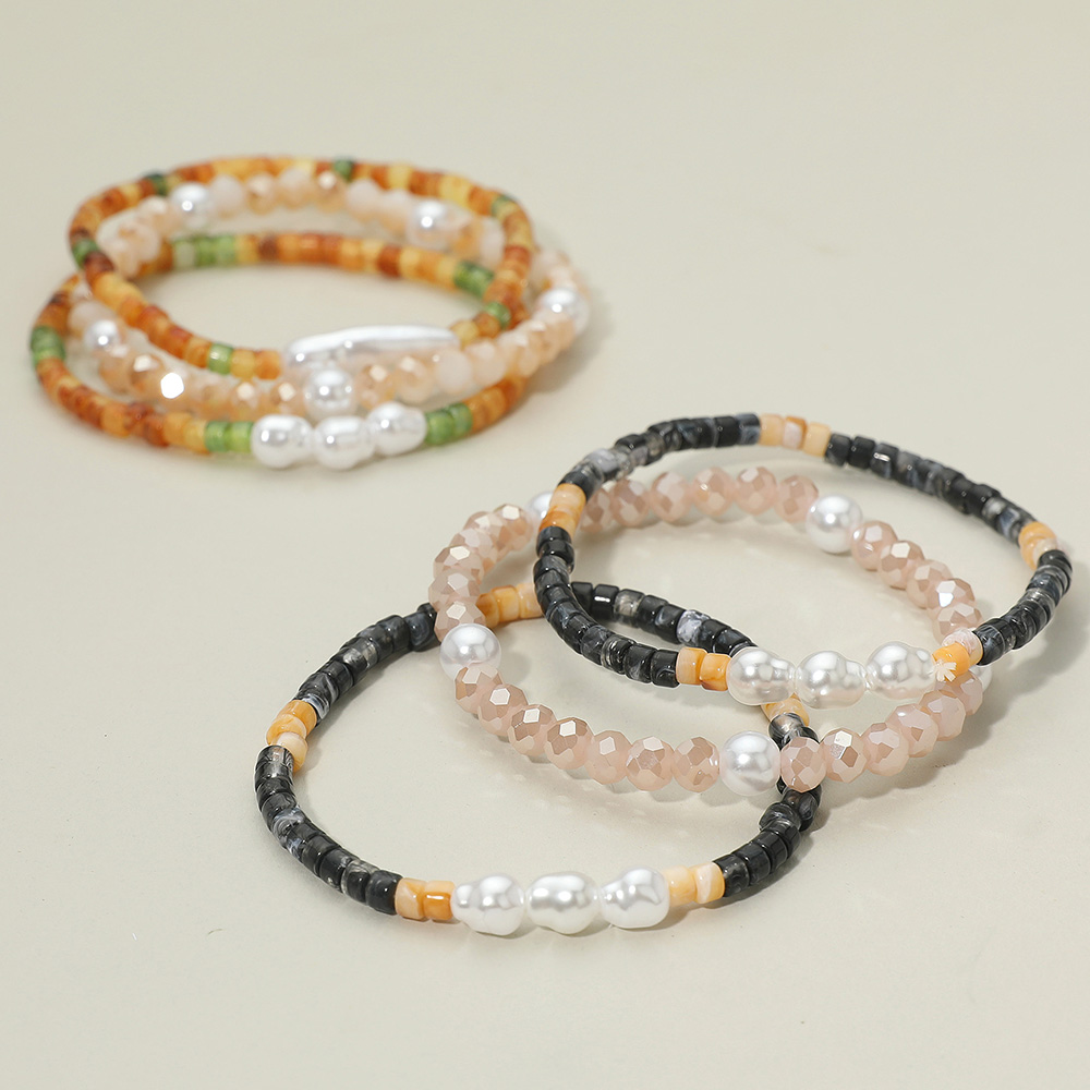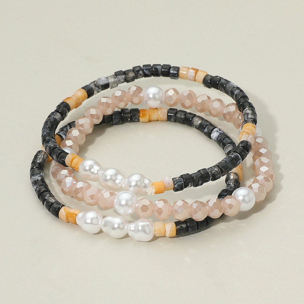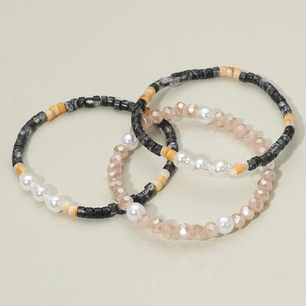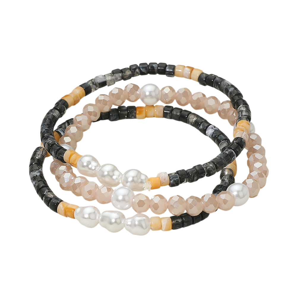 3PCS - Pearl Accented Faceted Beaded Stretch Bracelets