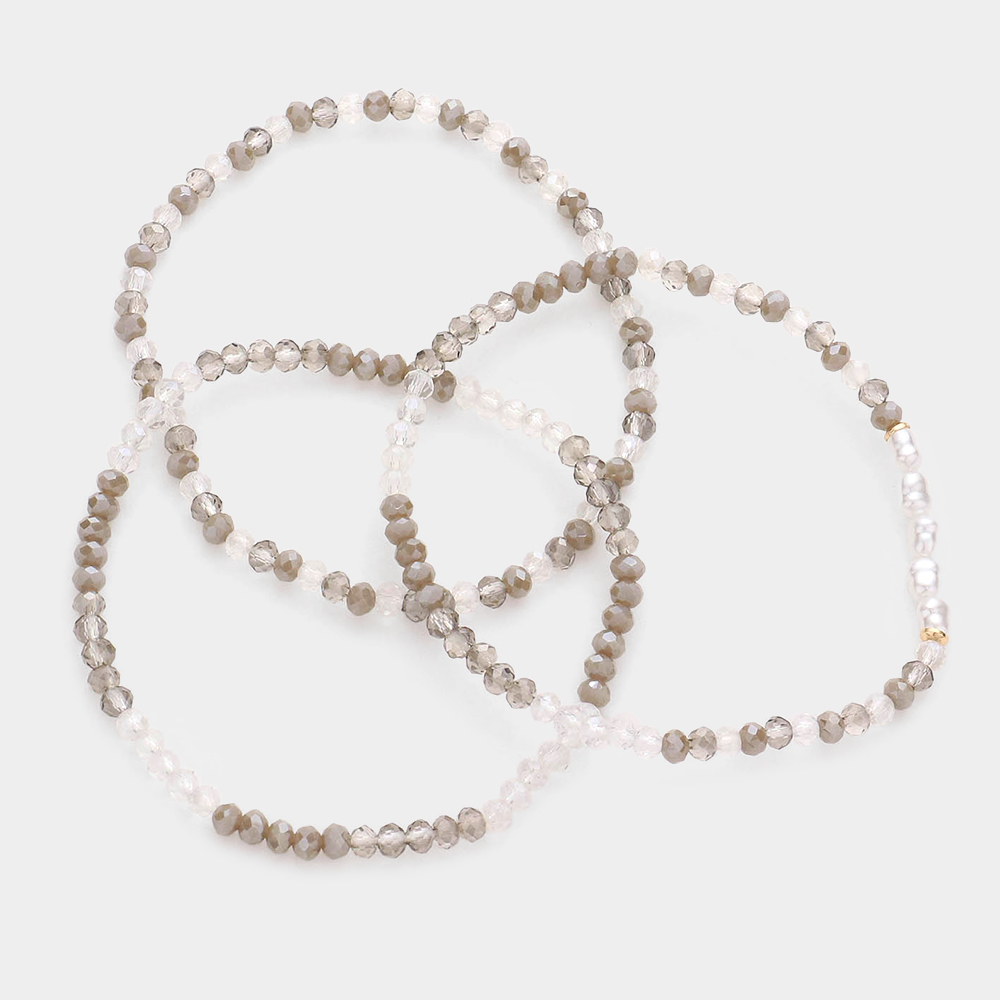 3PCS - Pearl Faceted Beaded Stretch Bracelets