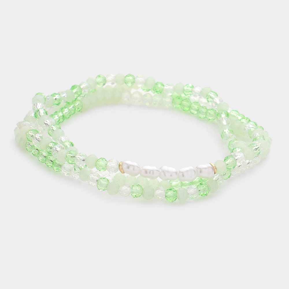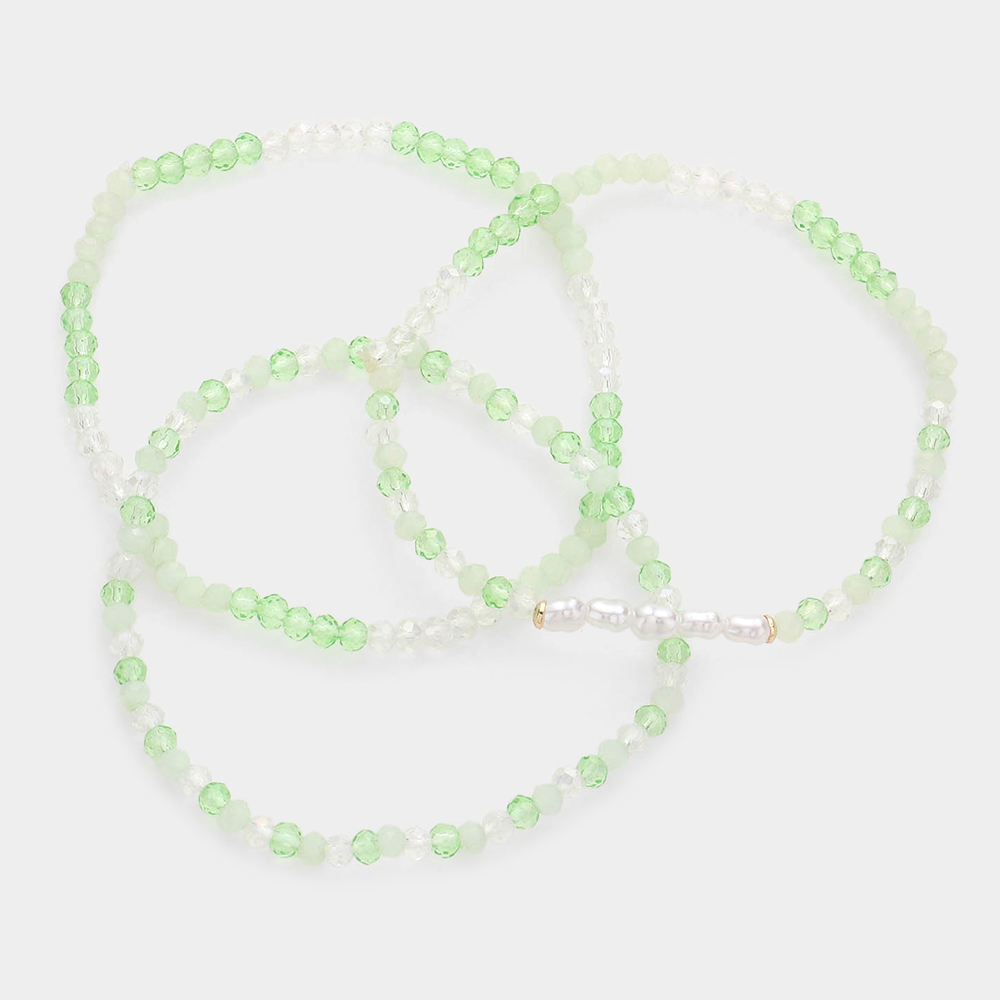 3PCS - Pearl Faceted Beaded Stretch Bracelets