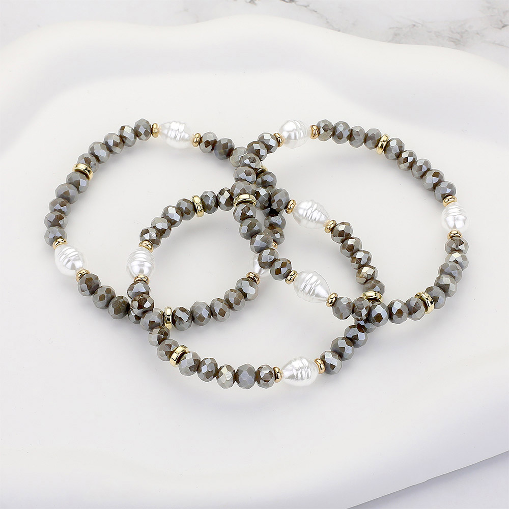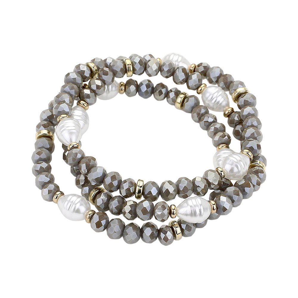 3PCS - Pearl Faceted Beaded Stretch Multi Layered Bracelets