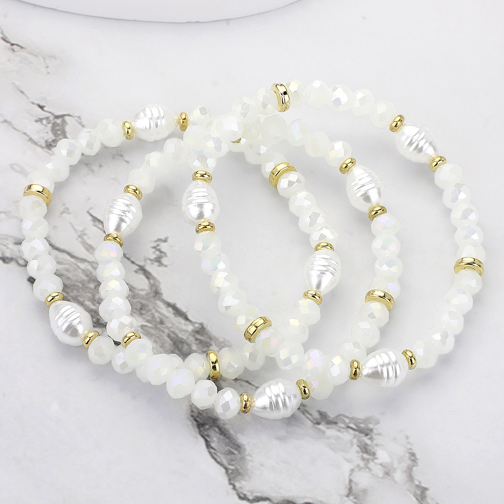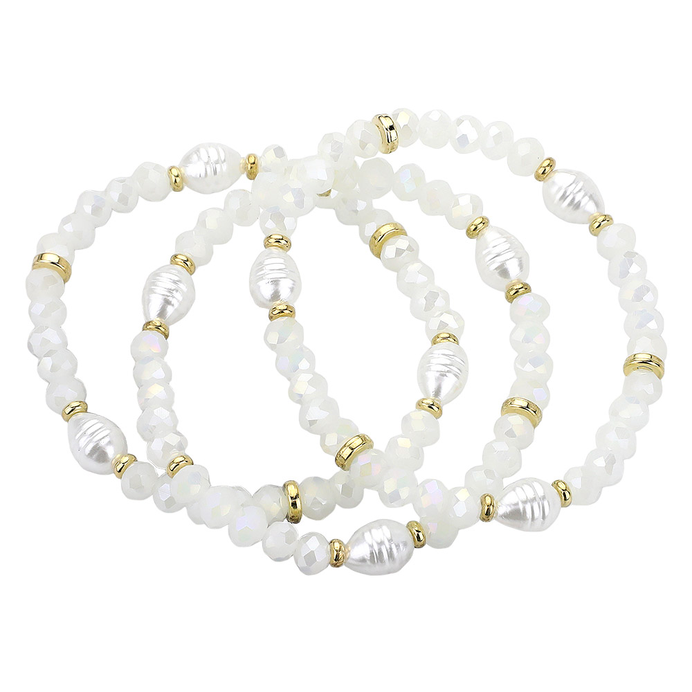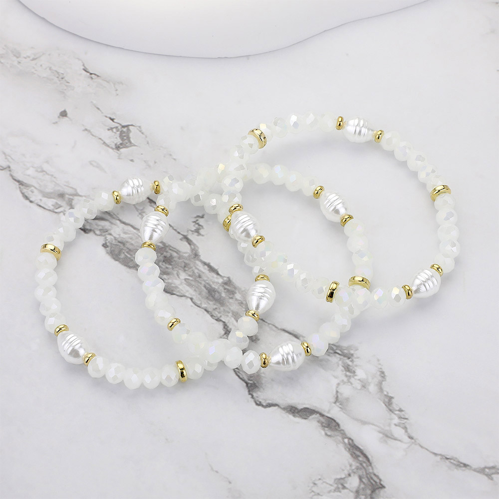 3PCS - Pearl Faceted Beaded Stretch Multi Layered Bracelets