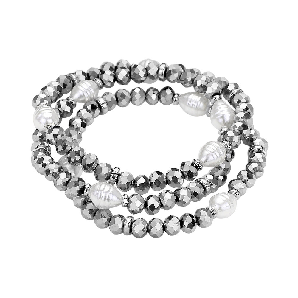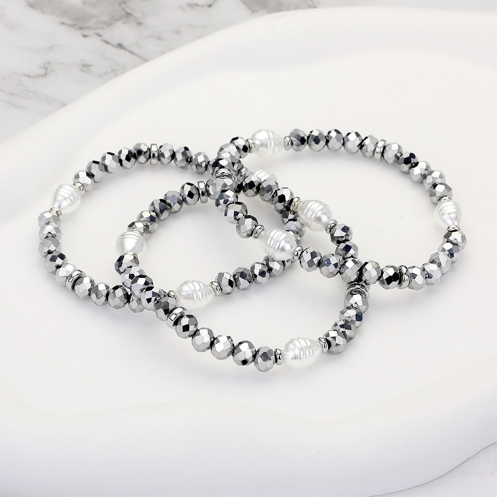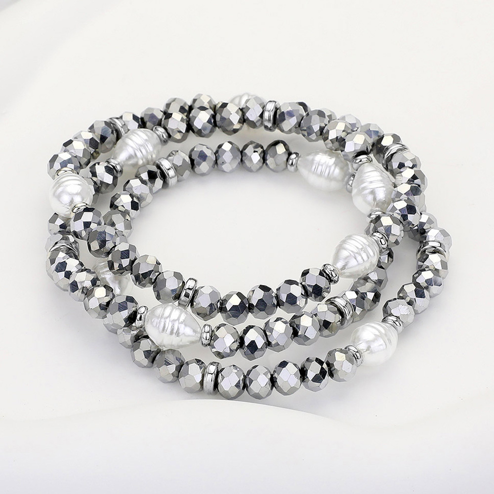 3PCS - Pearl Faceted Beaded Stretch Multi Layered Bracelets