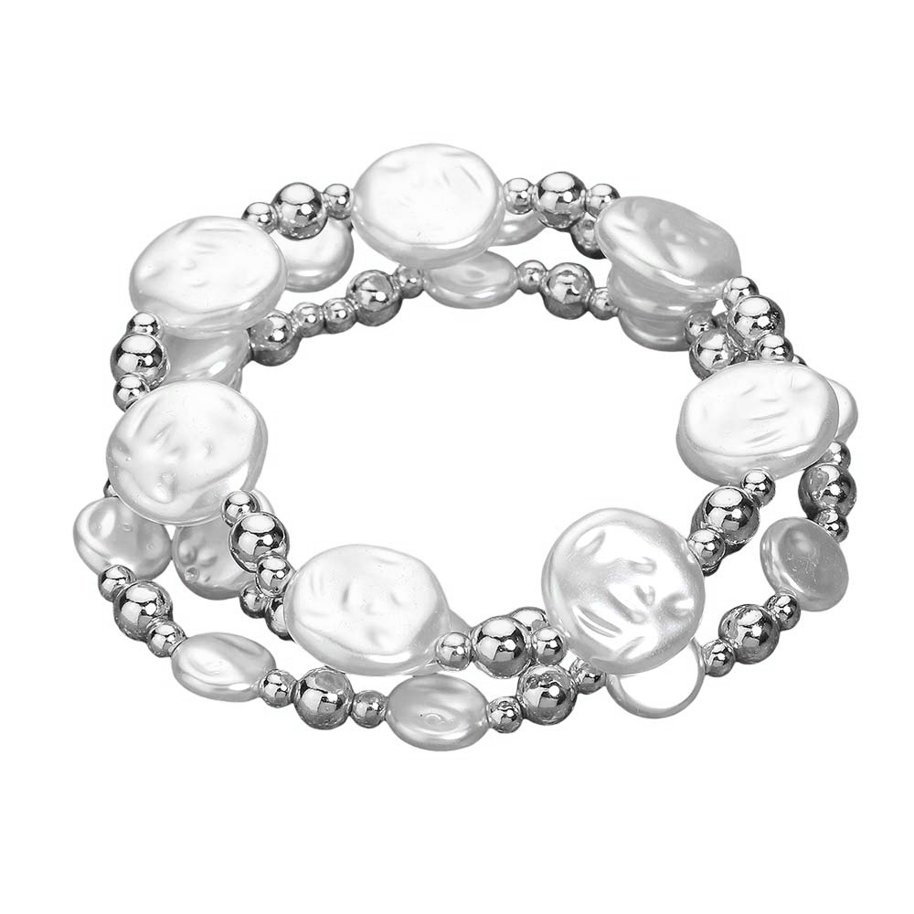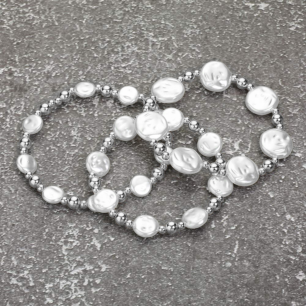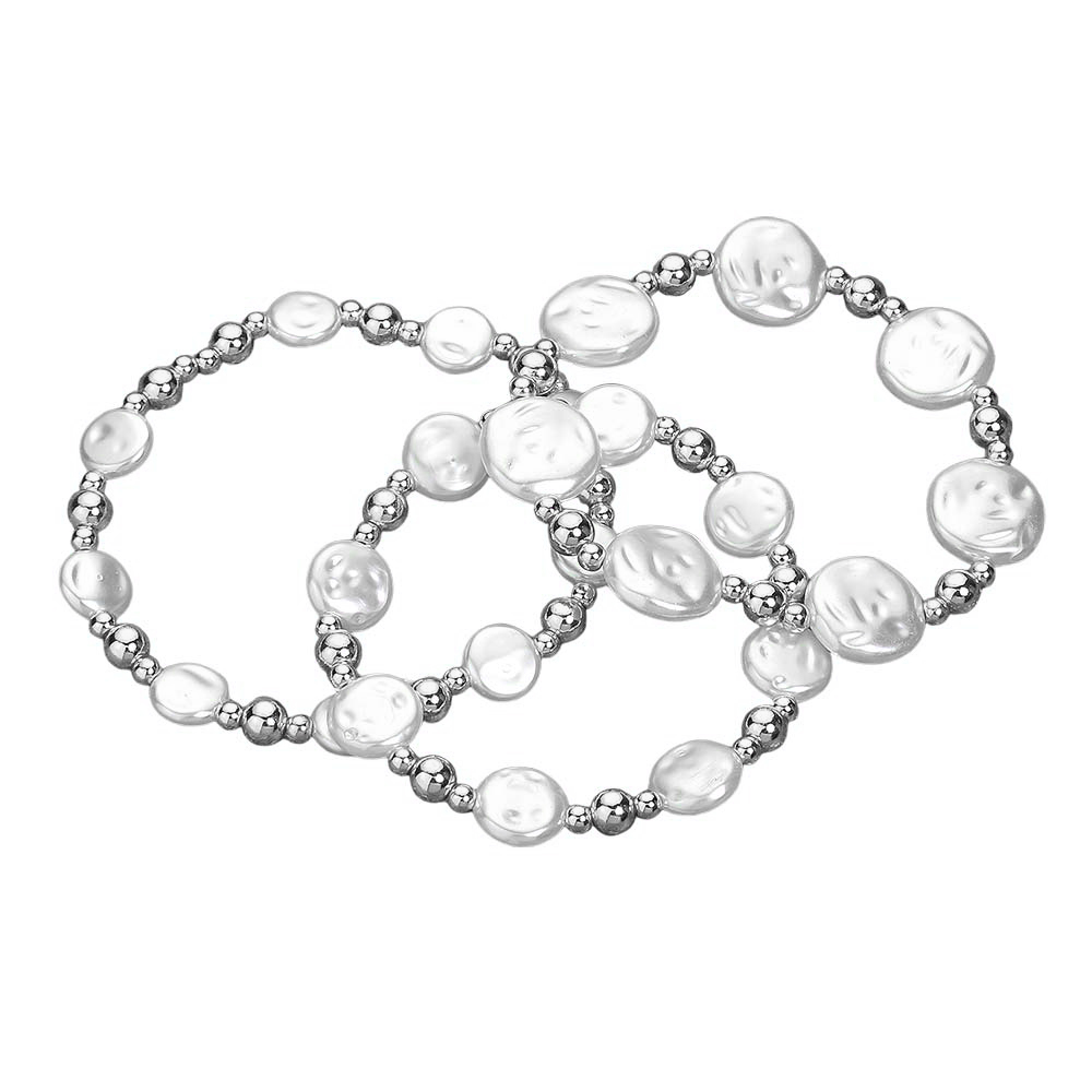 3PCS - Pearl Metal Ball Beaded Stretch Multi Layered Bracelets