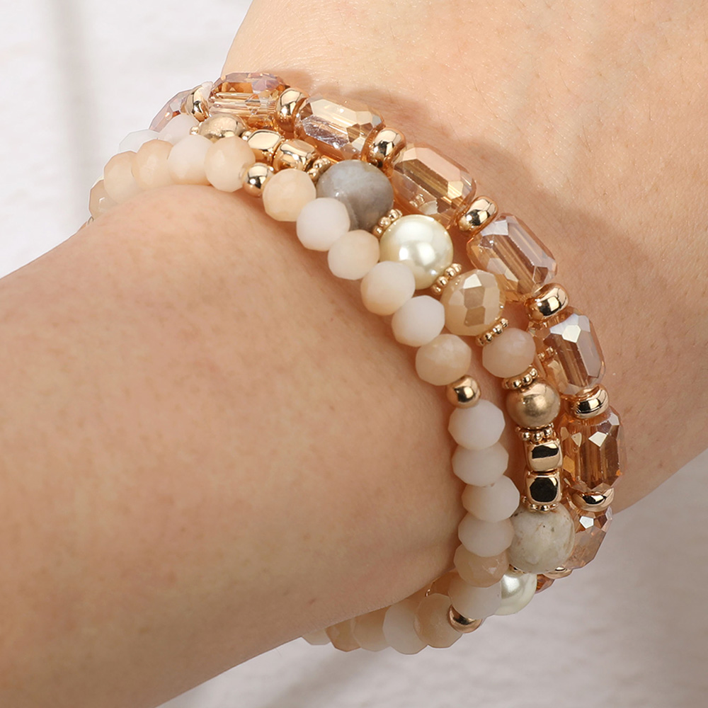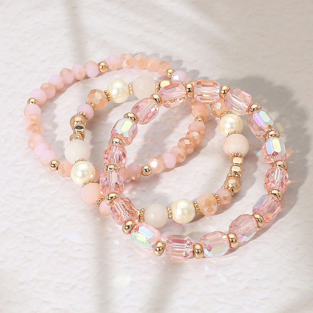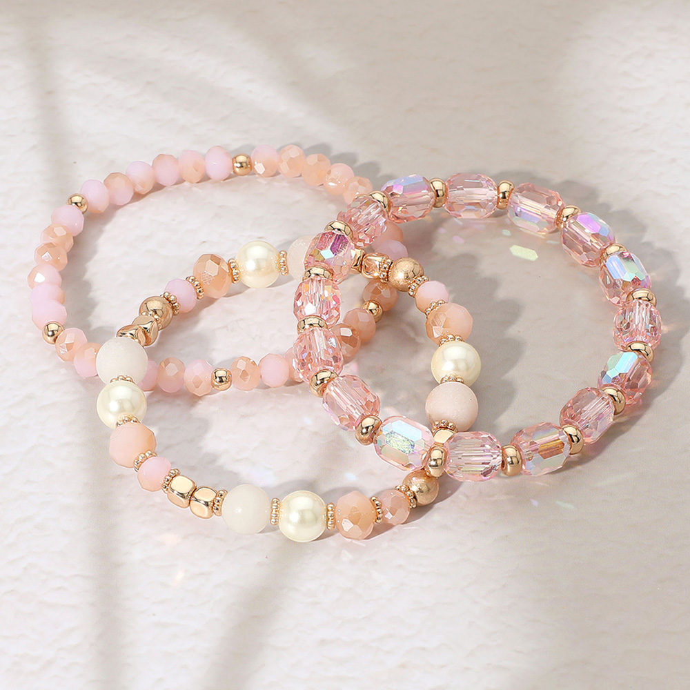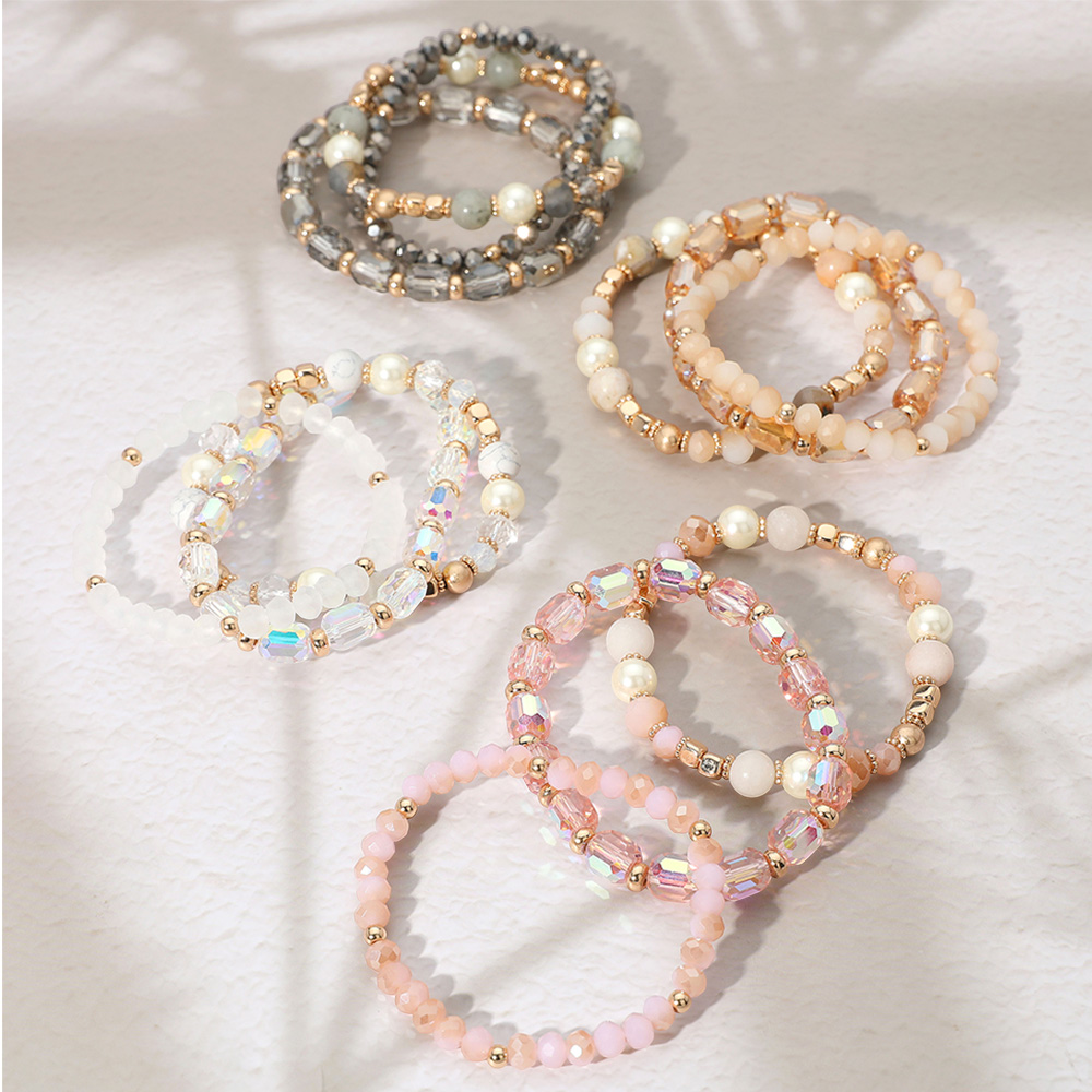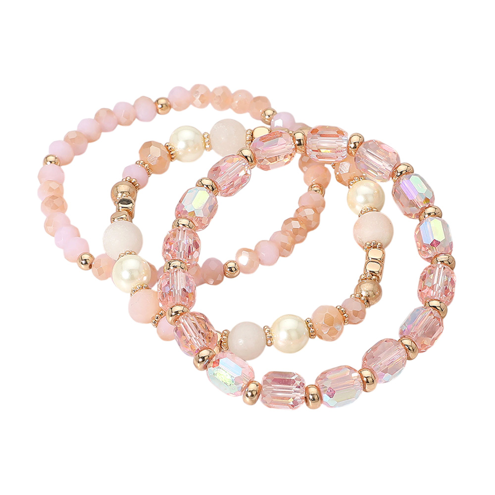 3PCS - Pearl Natural Stone Faceted Beaded Stretch Multi Layered Bracelets