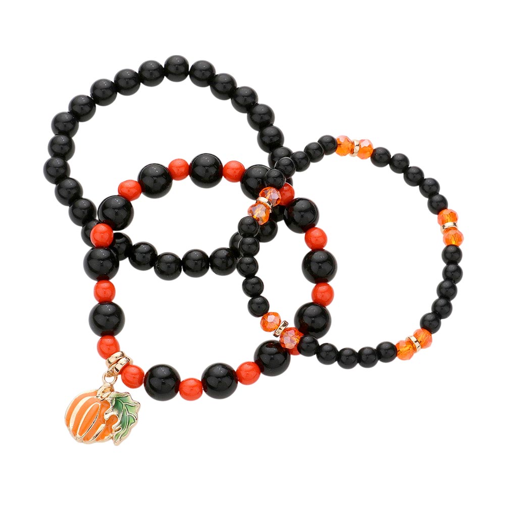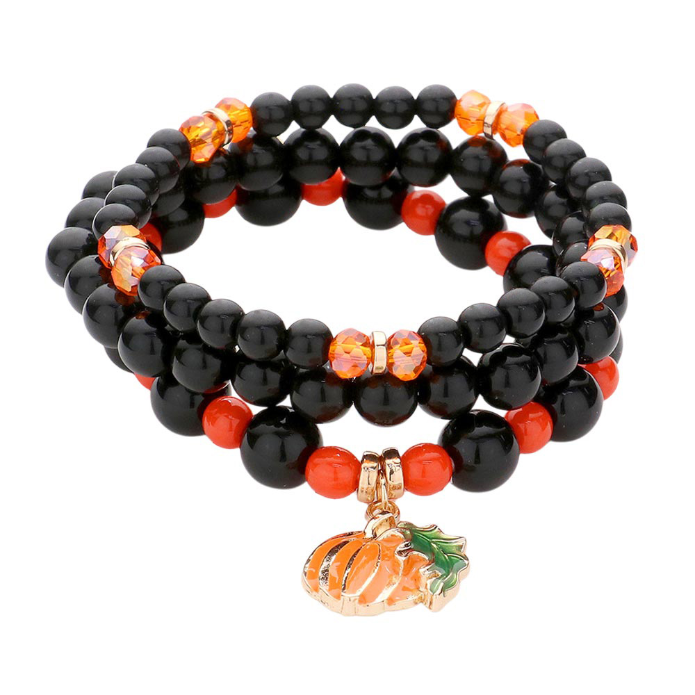 Details • Size : 0.8" H • Stretchable • Celebrate spooky season in style with this festive beaded bracelet featuring a playful pumpkin charm. Designed with vibrant beads and stretchy bands for a comfortable, eye-catching Halloween accessory. • Lead and Nickel Compliant