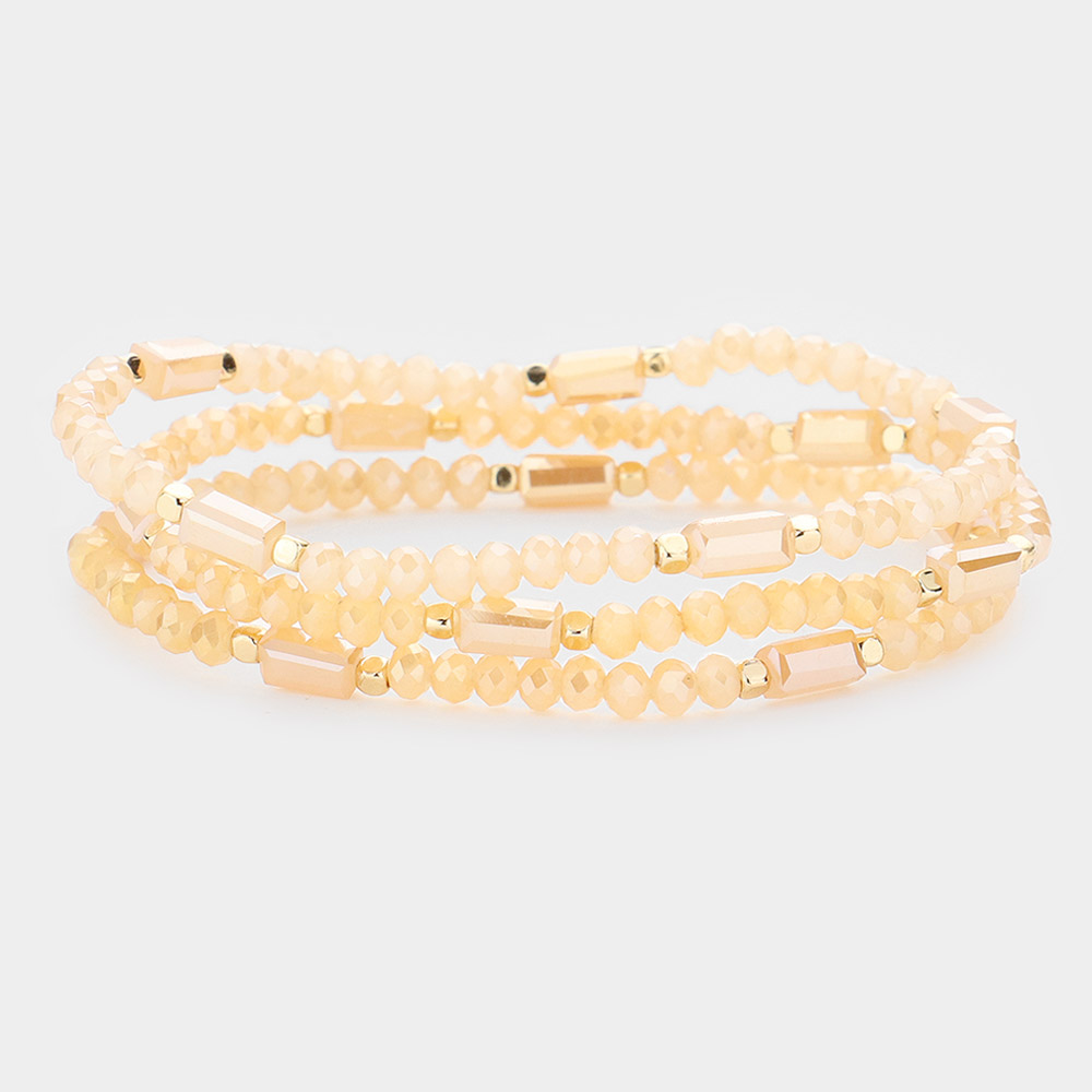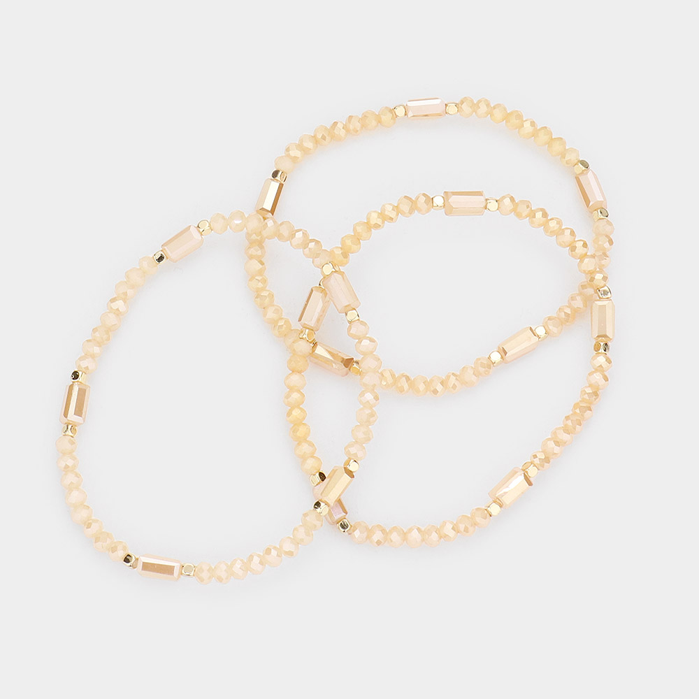 3PCS - Rectangle Pointed Faceted Beaded Stretch Bracelets