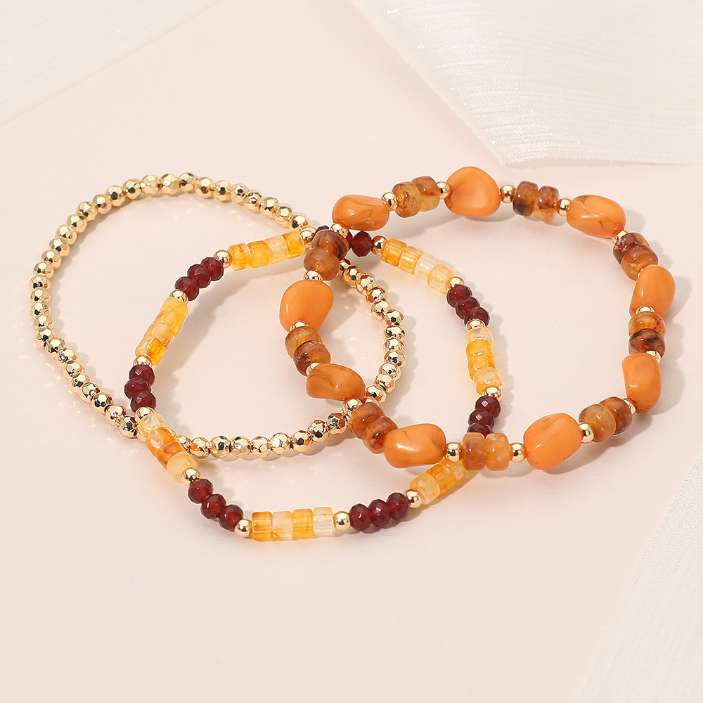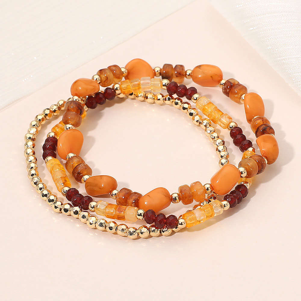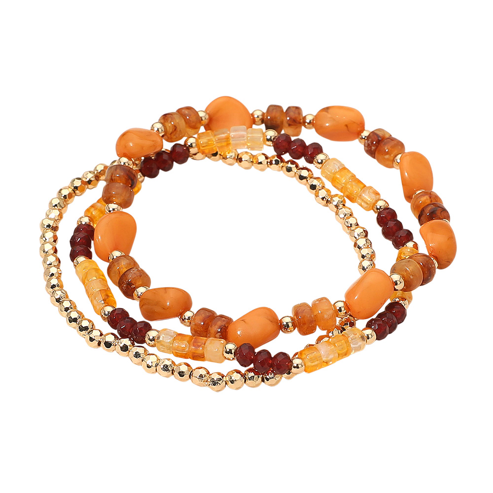 3PCS - Resin Pebble Metal Ball Beaded Stretch Multi Layered Bracelets