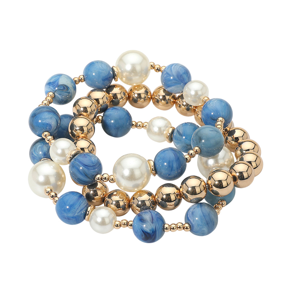 3PCS - Round Pearl Mixed Beaded Stretch Multi Layered Bracelets
