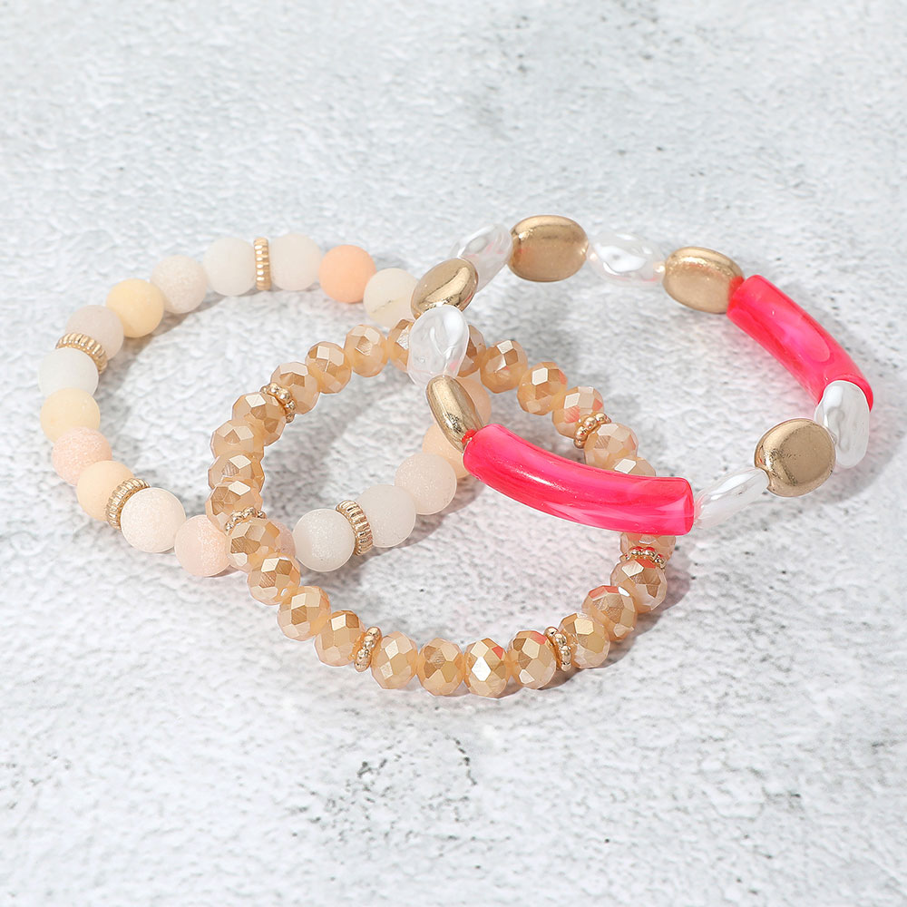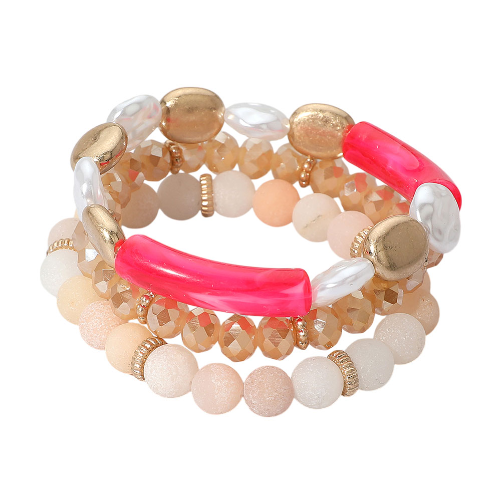 Details • Size : 1.25" H • Stretchable • Stylish 3-piece bracelet set featuring a unique combination of round, faceted, and bar-shaped beads. Stretch-fit for all-day comfort, perfect for layering or wearing solo. • Lead and Nickel Compliant