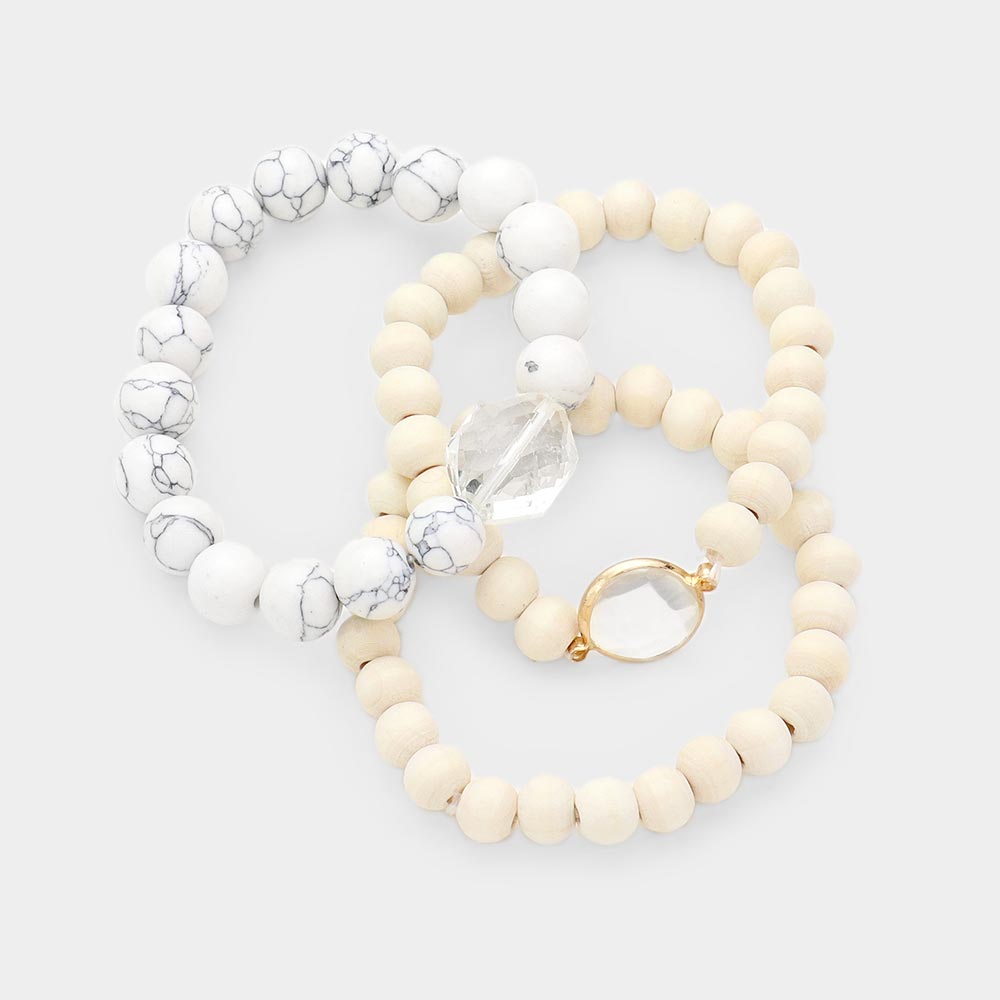 3PCS - Semi Precious Wood Beaded Layered Bracelets