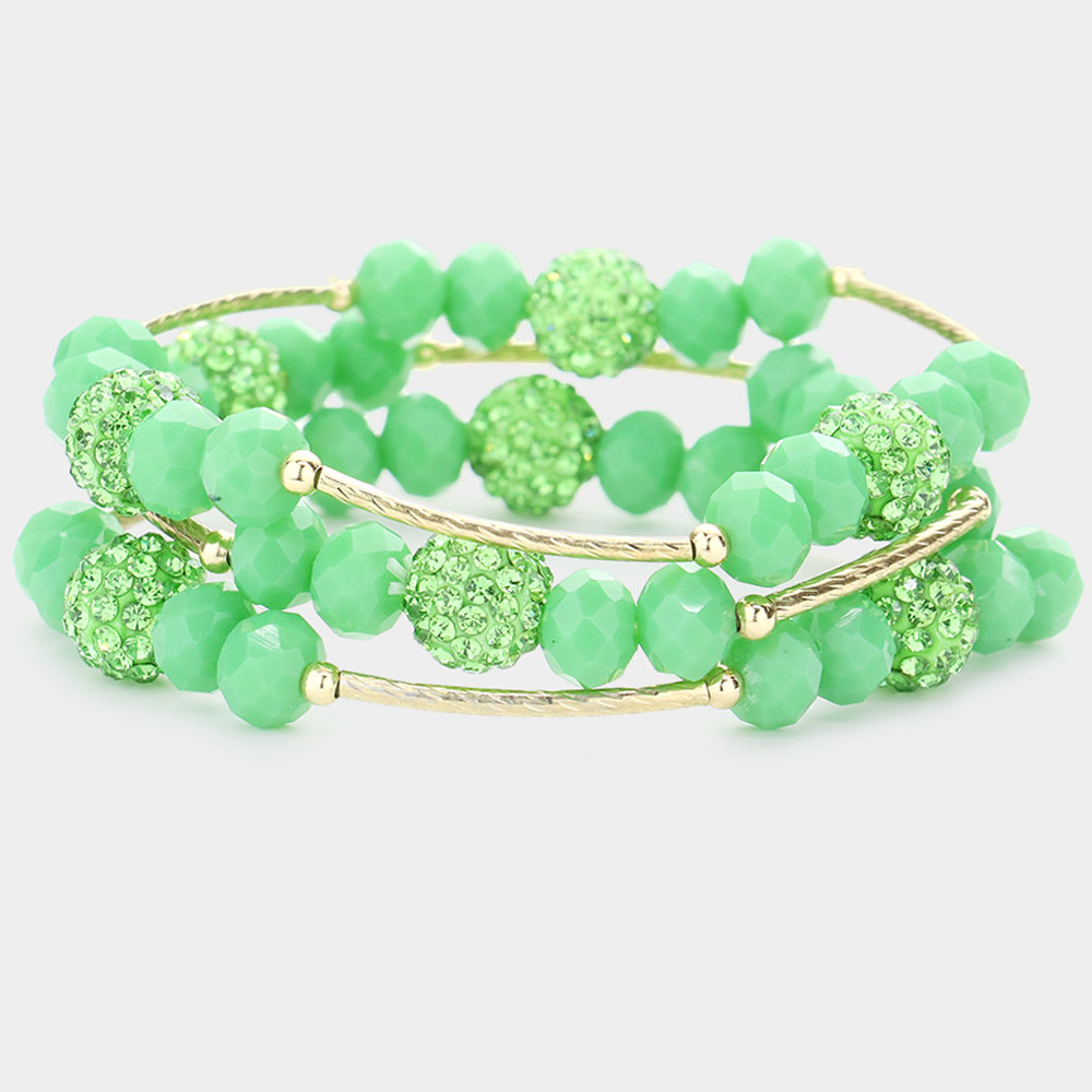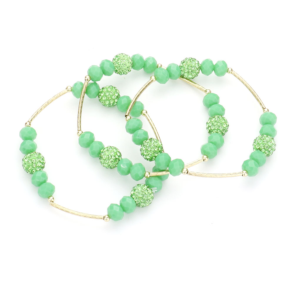 3PCS - Shamballa Ball Faceted Beaded Stretch Bracelets