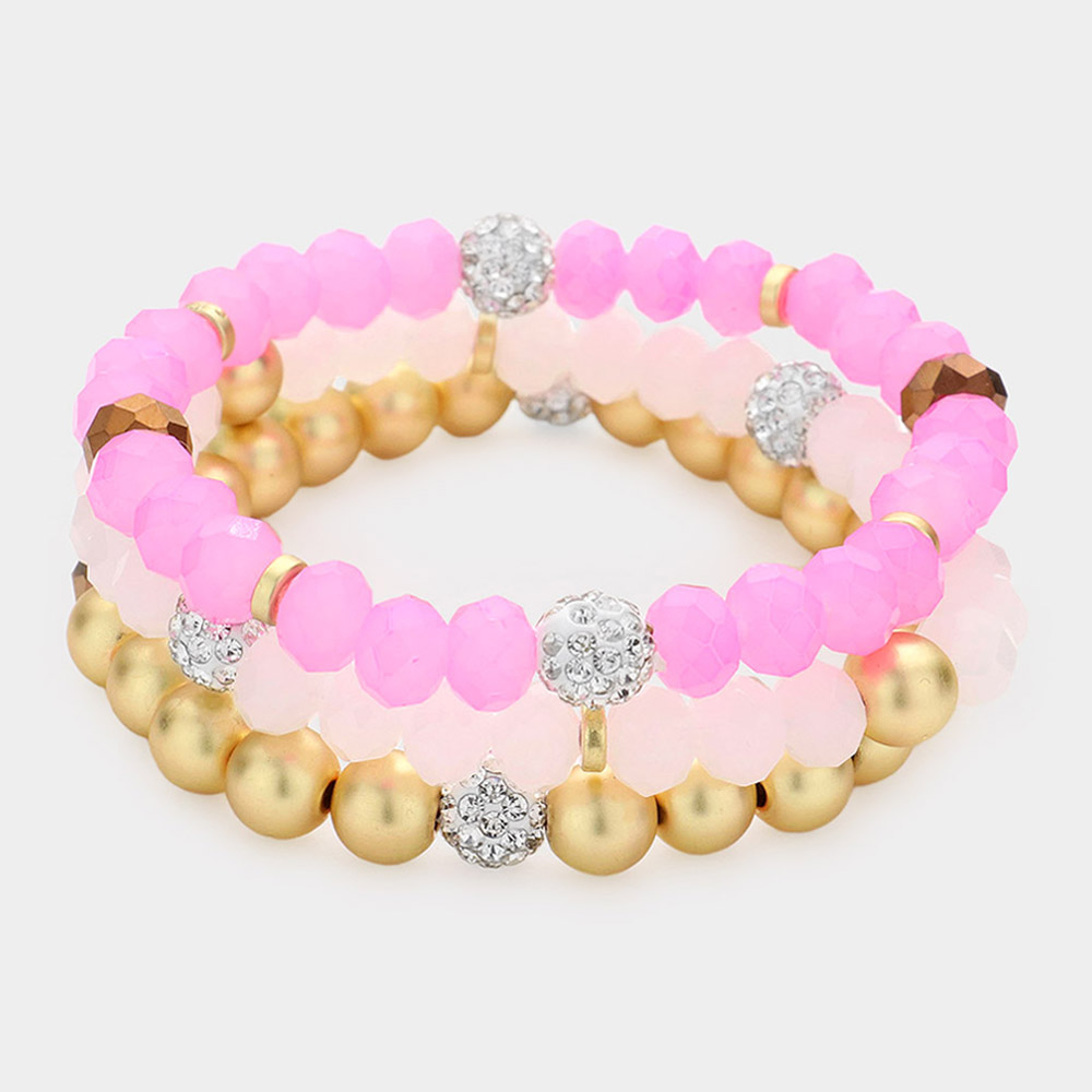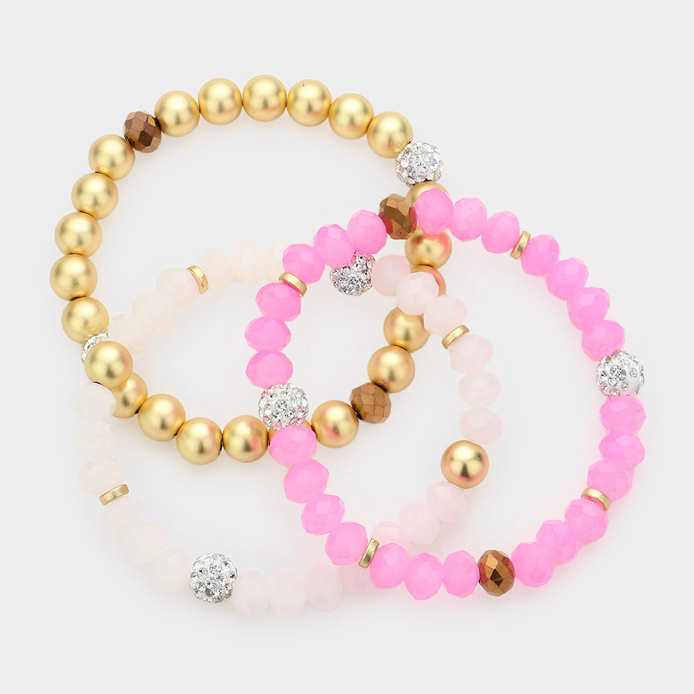 3PCS - Shamballa Ball Faceted Beaded Stretch Bracelets