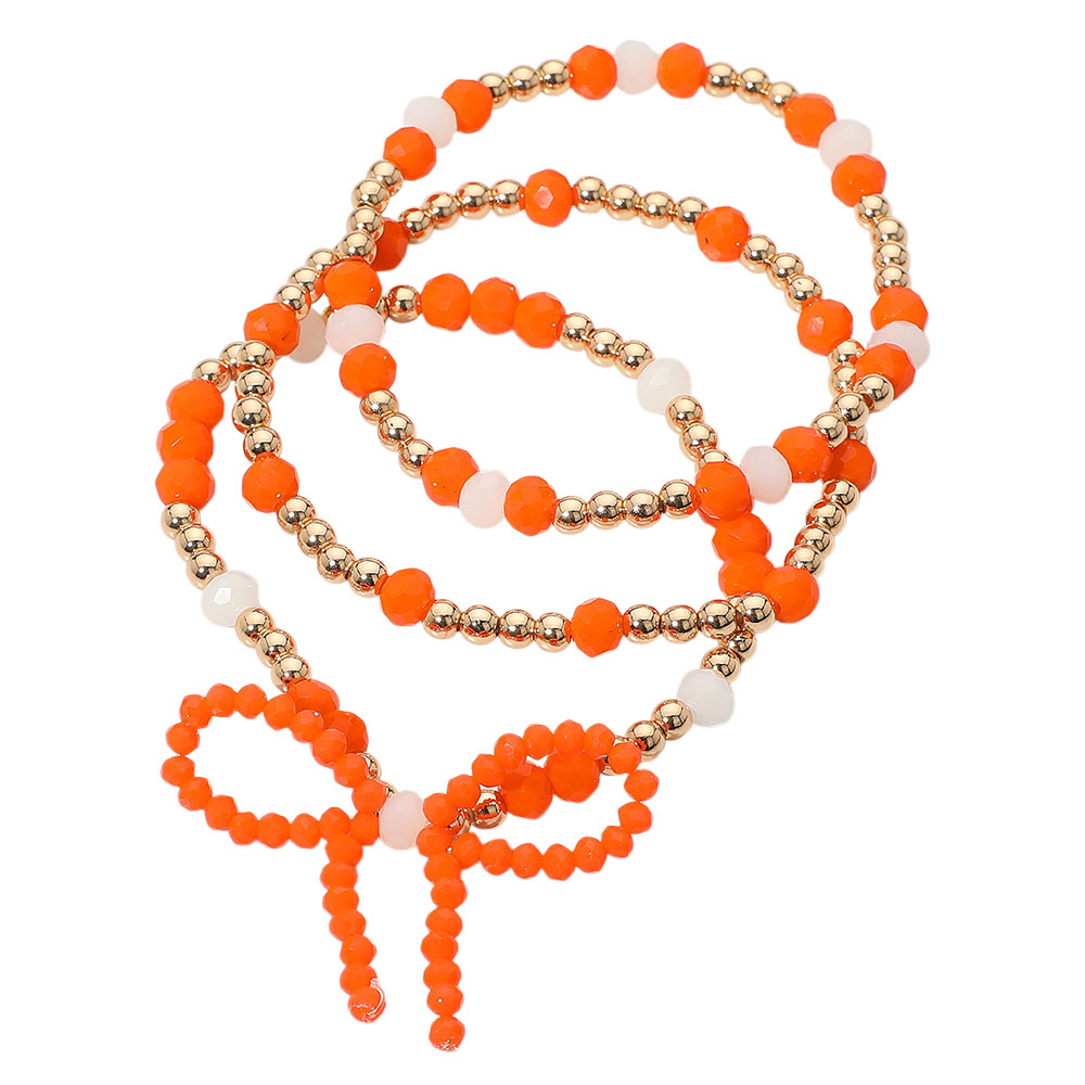 Details • Size : 1.75" H • Stretchable • Stylish beaded stretch bracelet set featuring a playful bow design and a mix of faceted and metallic beads. Easy to wear and stack, this piece adds a bold and fun touch to casual or sporty outfits. • Lead and Nickel Compliant
