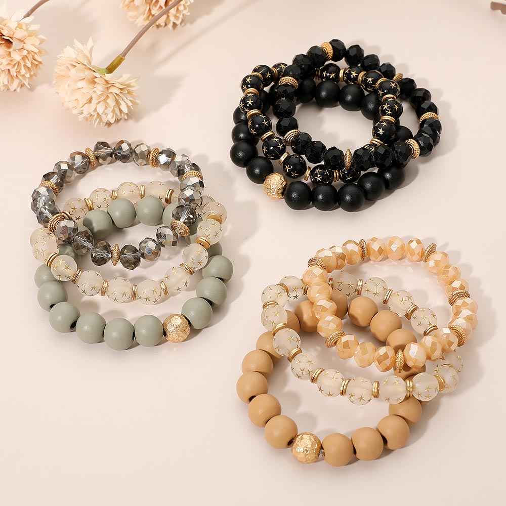 3PCS - Stackable Wooden Faceted Beaded Stretch Multi Layered Bracelets