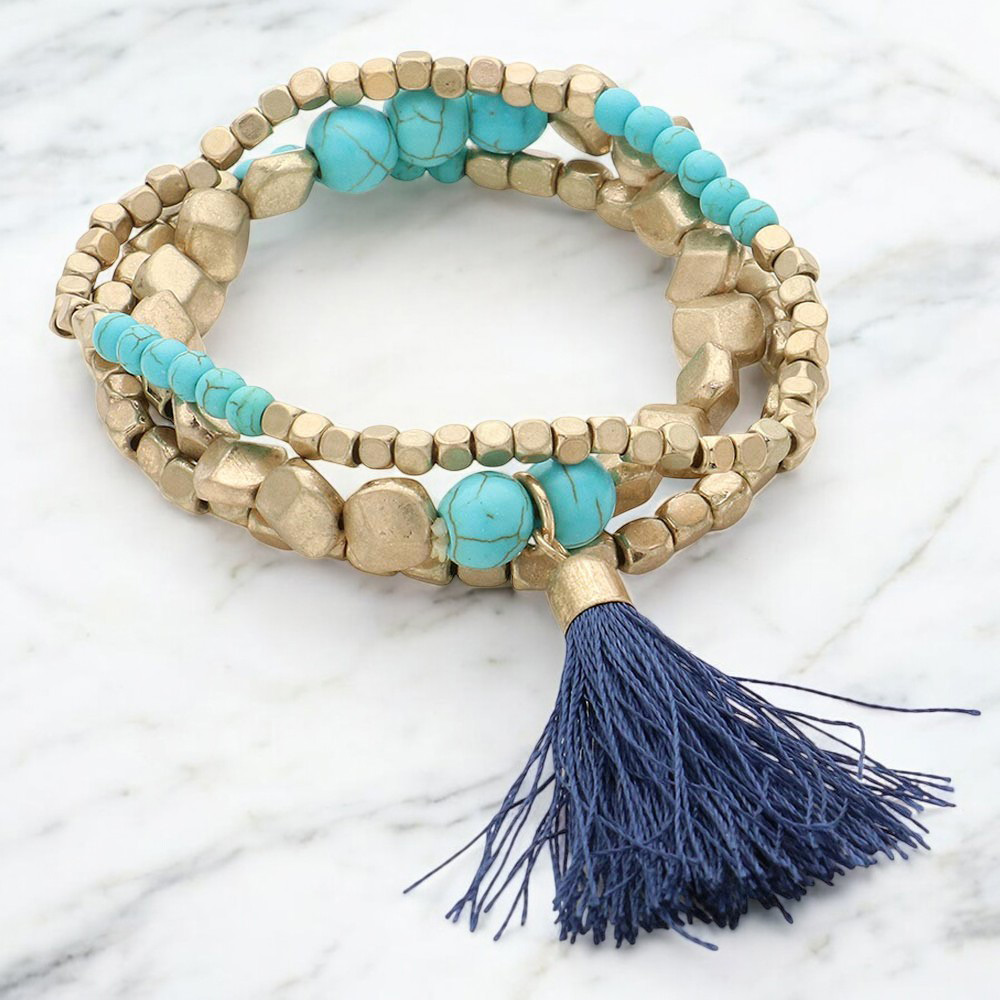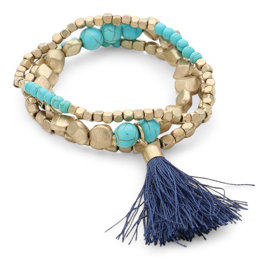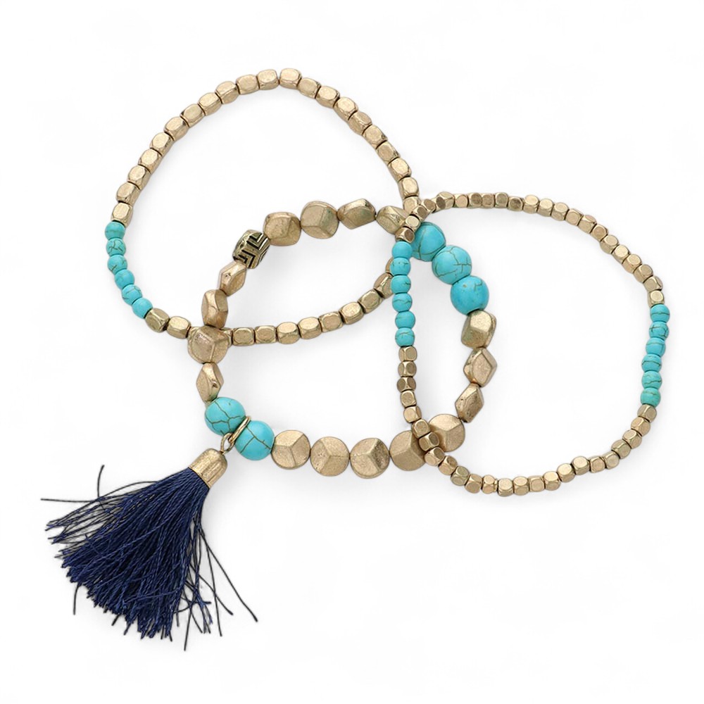 3PCS - Tassel Pointed Beaded Stretch Multi Layered Bracelet