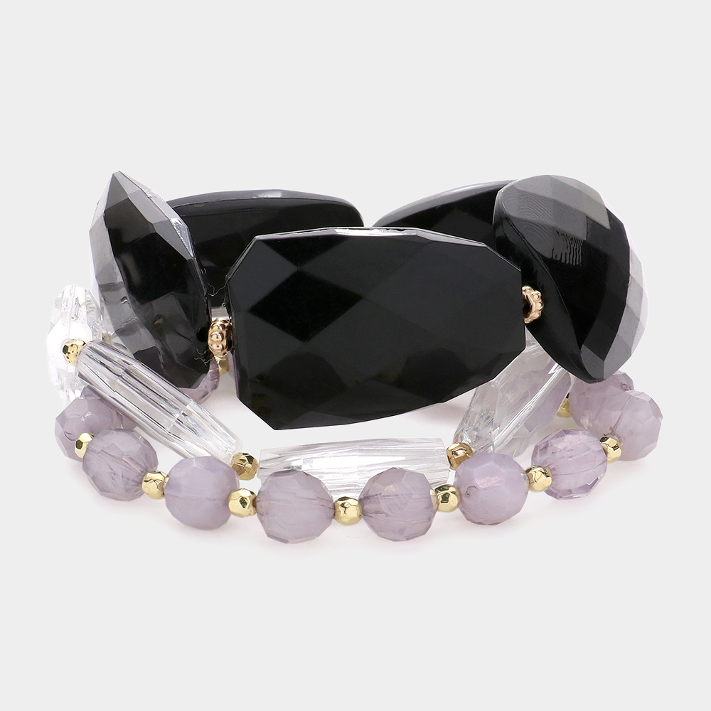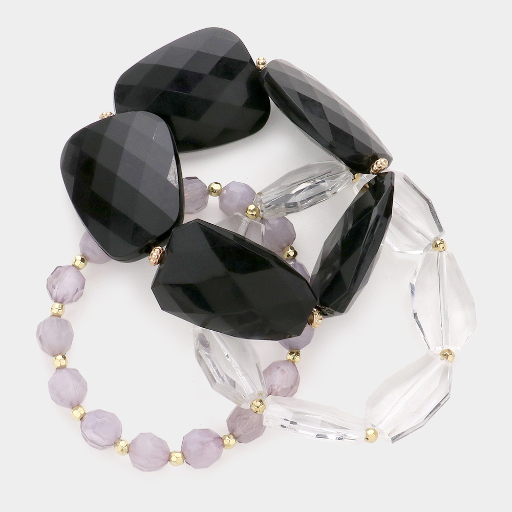 3PCS - Tiered Resin Pebble Beaded Stretch Bracelets