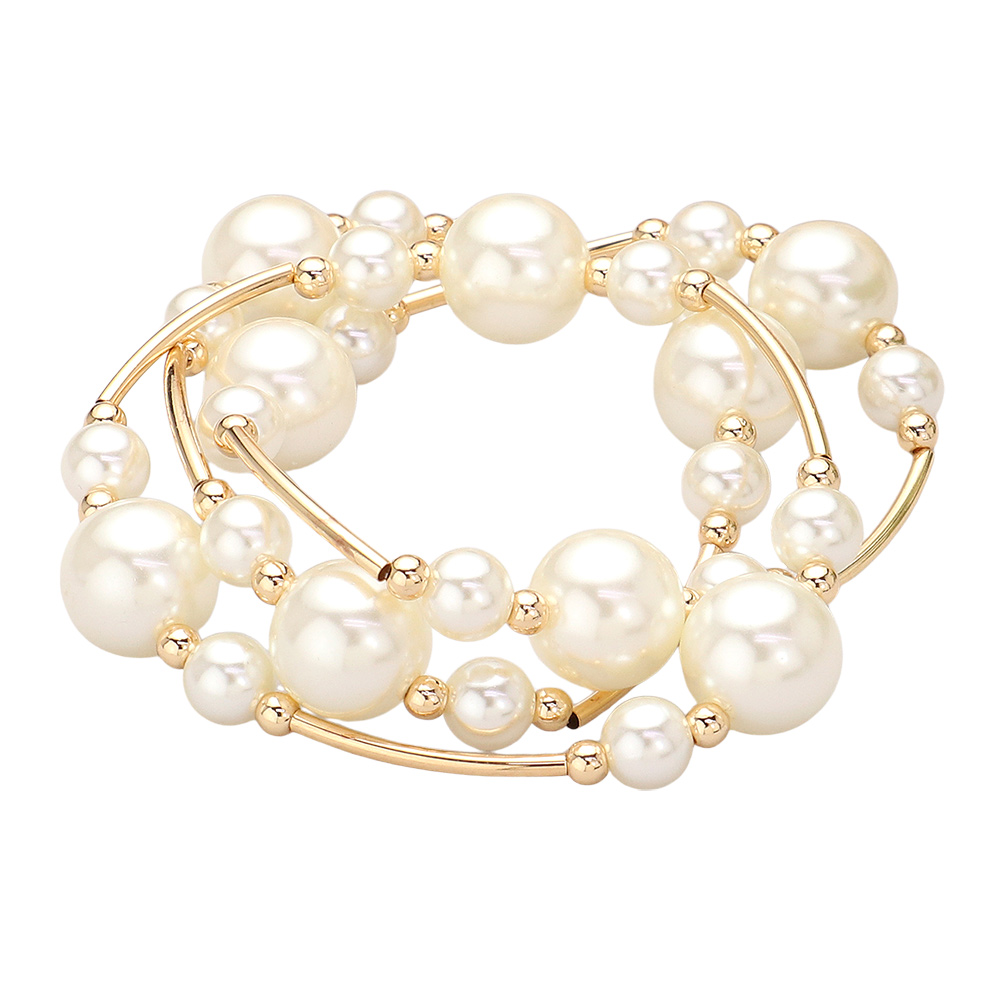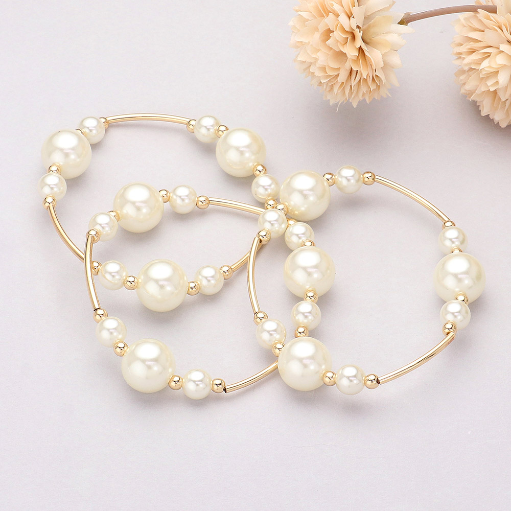 3PCS - Triple Pearl Ball Beaded Station Stretch Multi Layered Bracelets