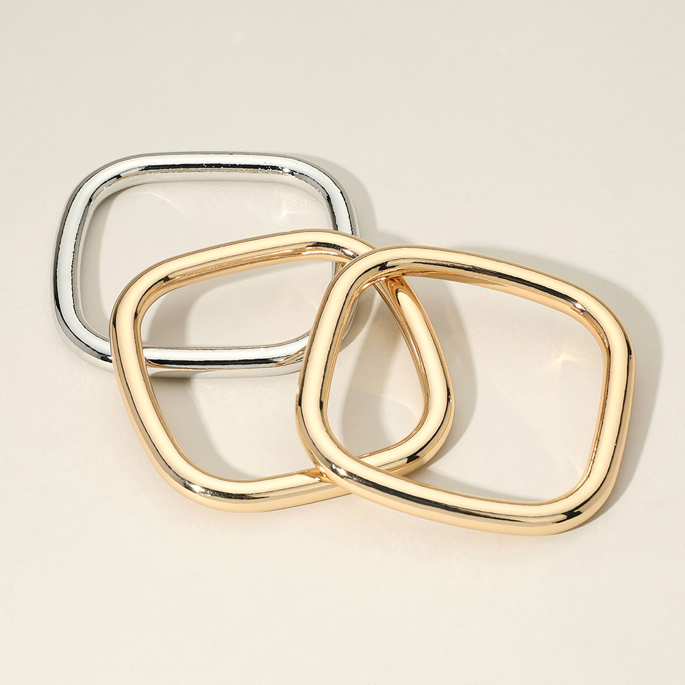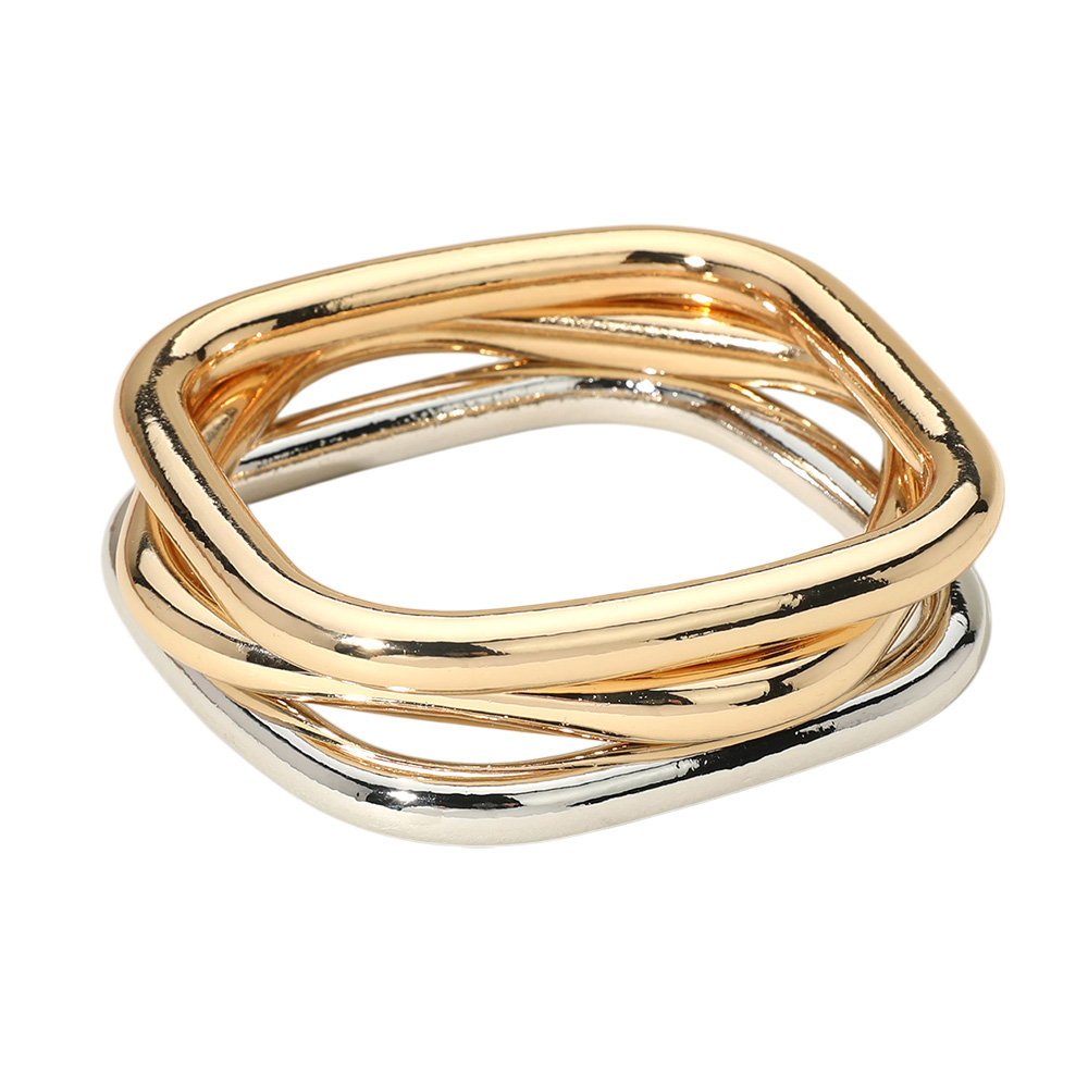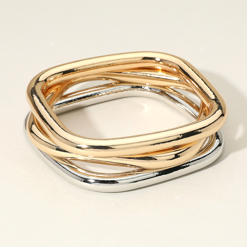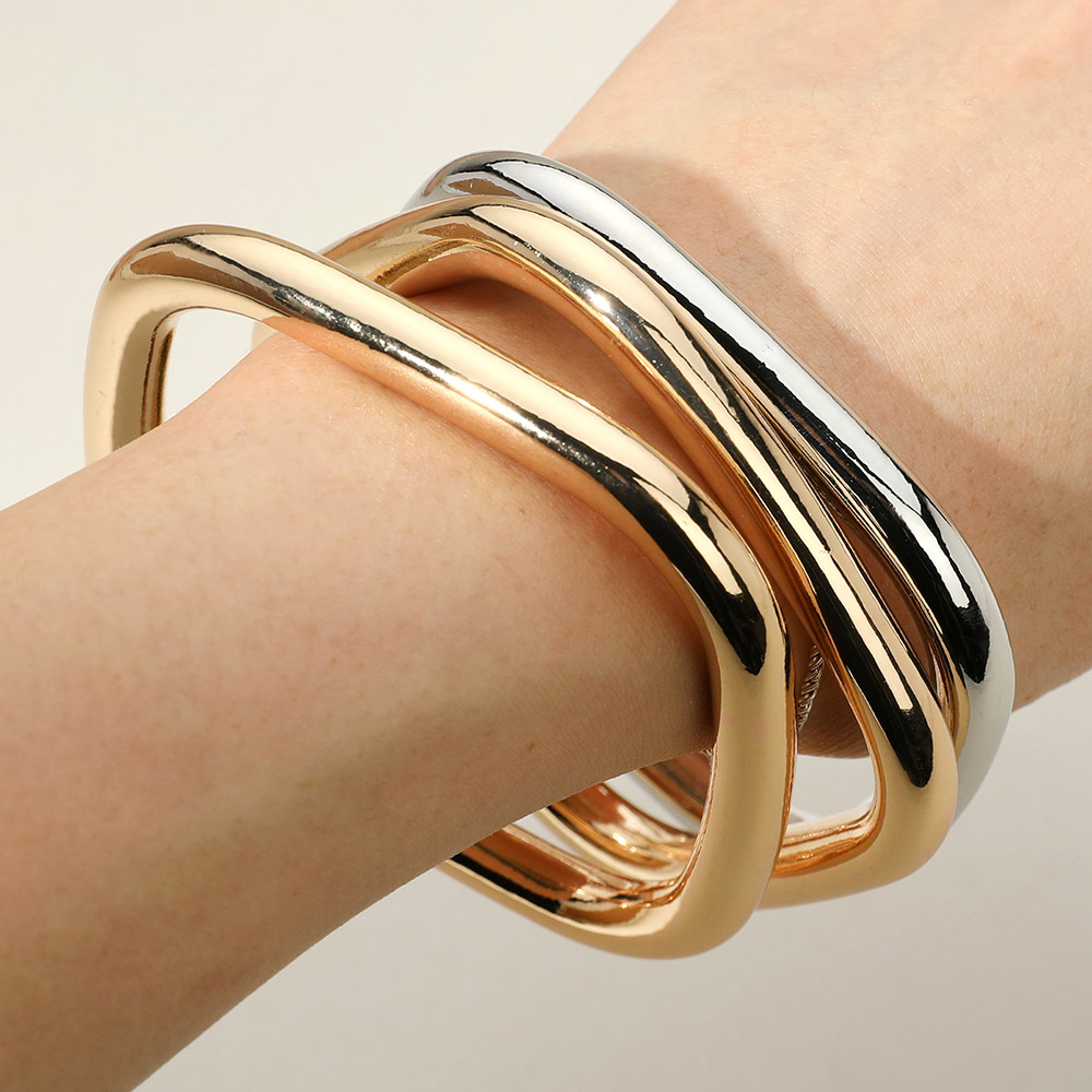3PCS - Two Tone Metal Square Bangle Bracelet