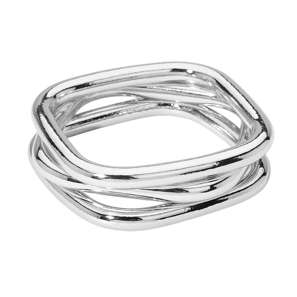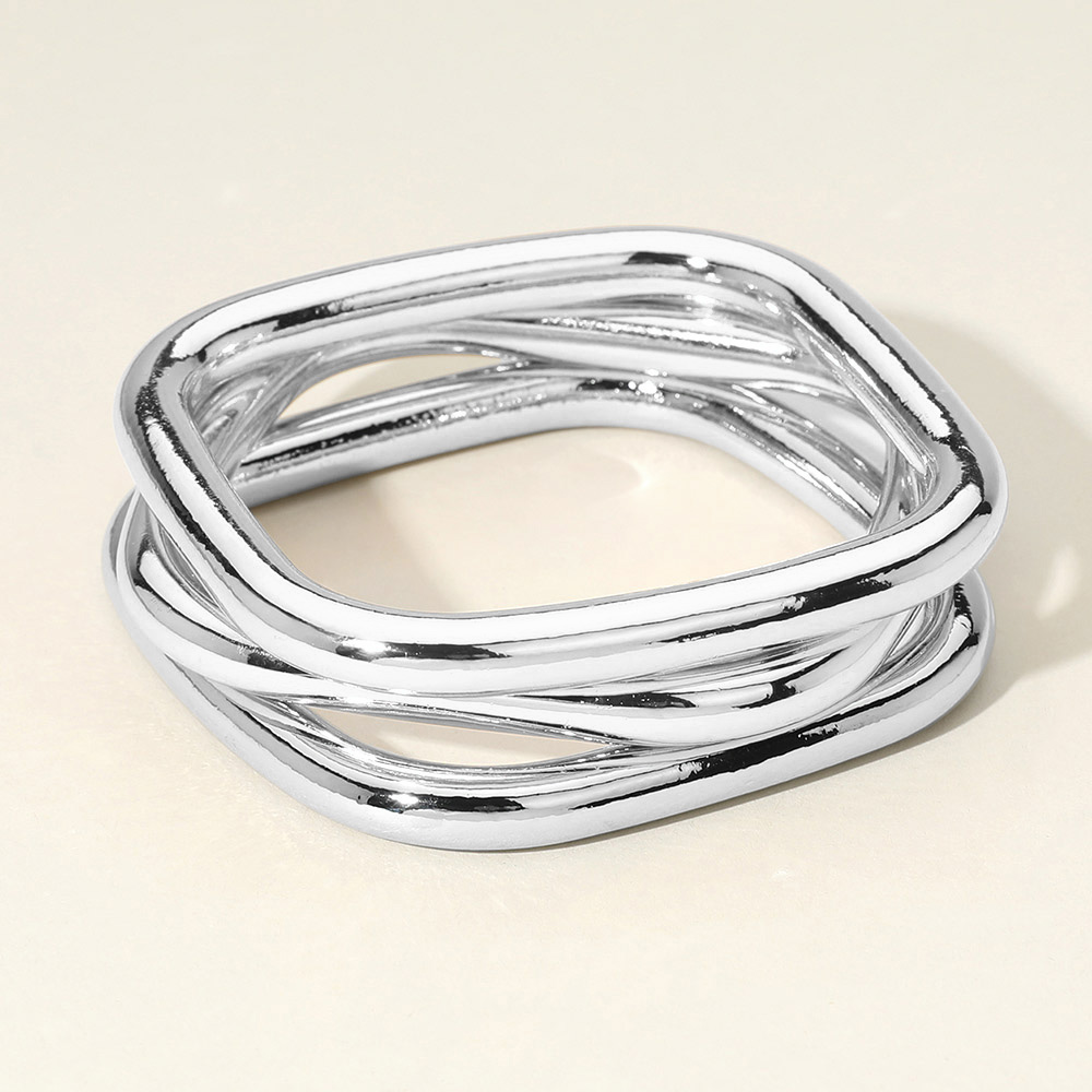 Details • Size : 0.8" H, 2.5" D • Stylish stacked geometric bangle bracelet featuring a sleek modern design perfect for layering or wearing solo. This contemporary accessory adds a polished touch to casual and dressy outfits, making it a versatile addition to any jewelry collection. • Lead and Nickel Compliant