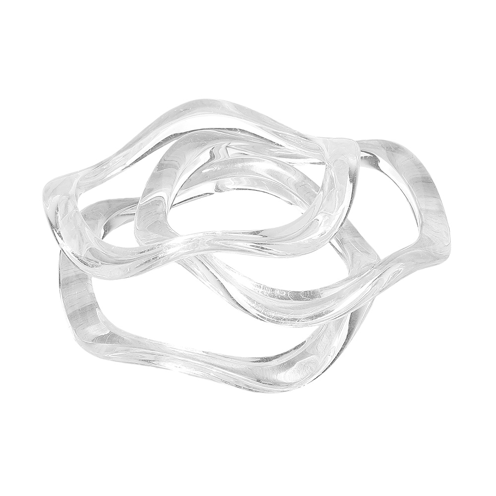 Details • Size : 1" H, 2.5" D • Add a bold twist to your look with this 3-piece resin bangle set featuring a unique wavy design. Lightweight and stackable, these bangles bring modern flair to casual or dressy outfits, making them the perfect fashion-forward accessory for everyday wear or gifting.